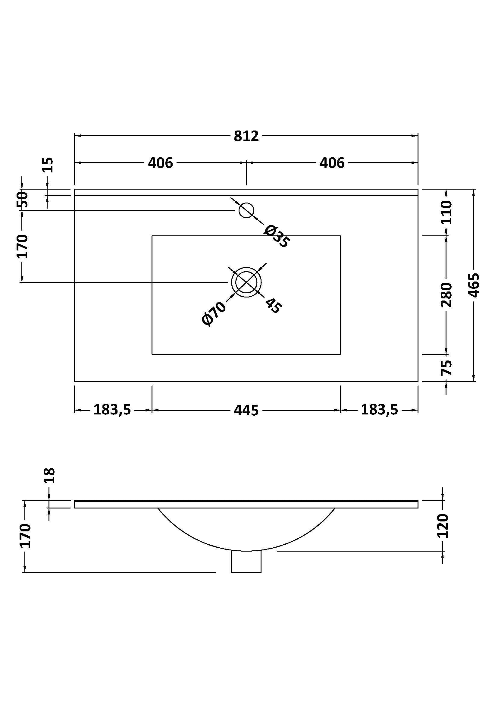 Increase quantity for 1 Tap Hole Minimalist Basin - 800mm x 460mm