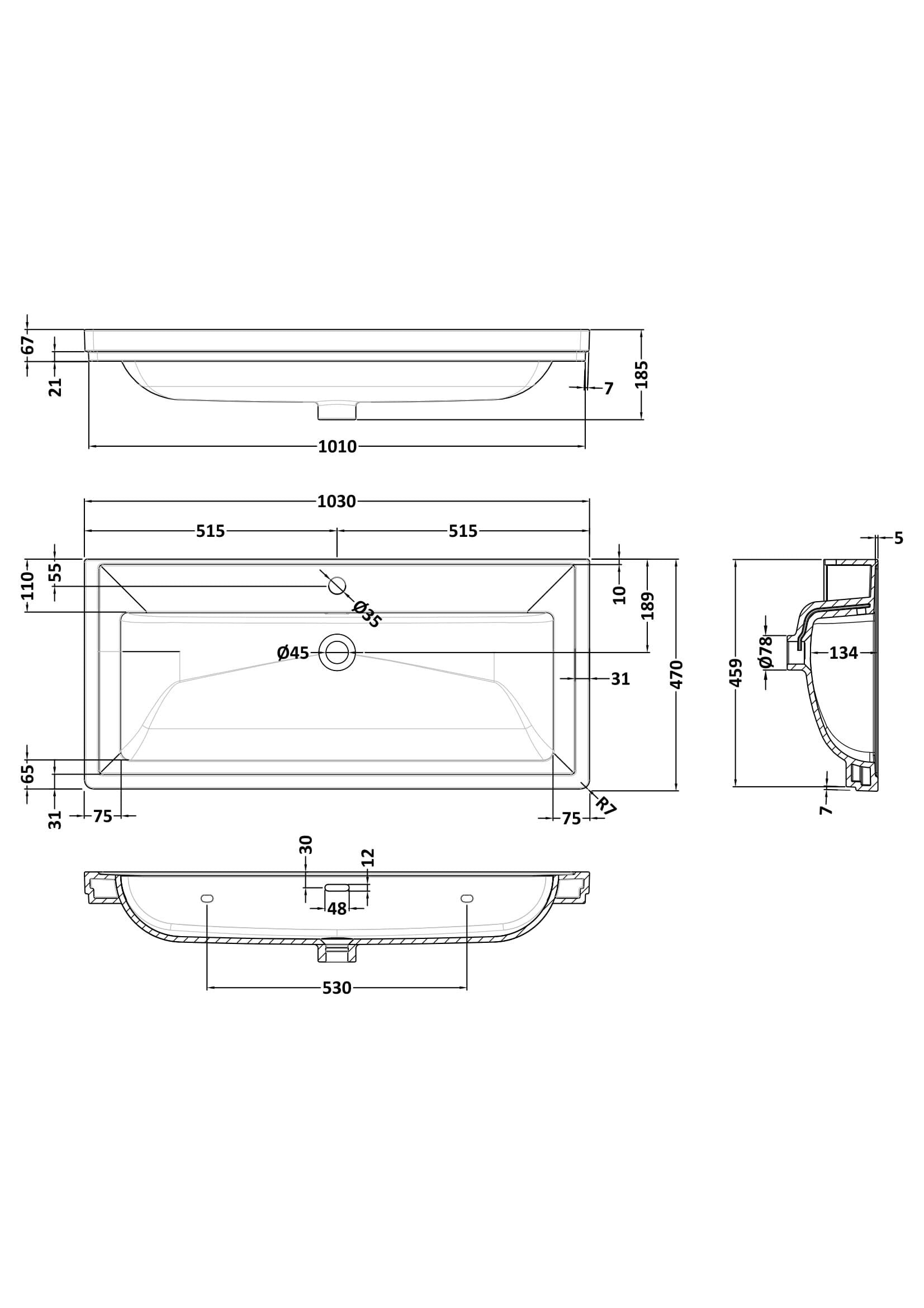 Increase quantity for 1000mm Classic Fireclay Basin - 1 Tap Hole