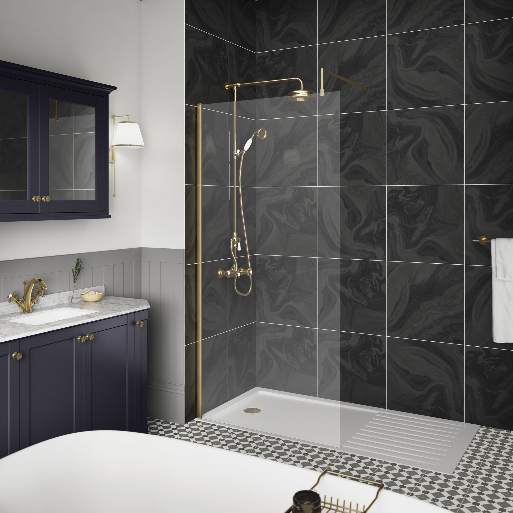 Hudson Reed 1000mm Wetroom Screen With Brass Support Bar - 8mm Glass - Brushed Brass