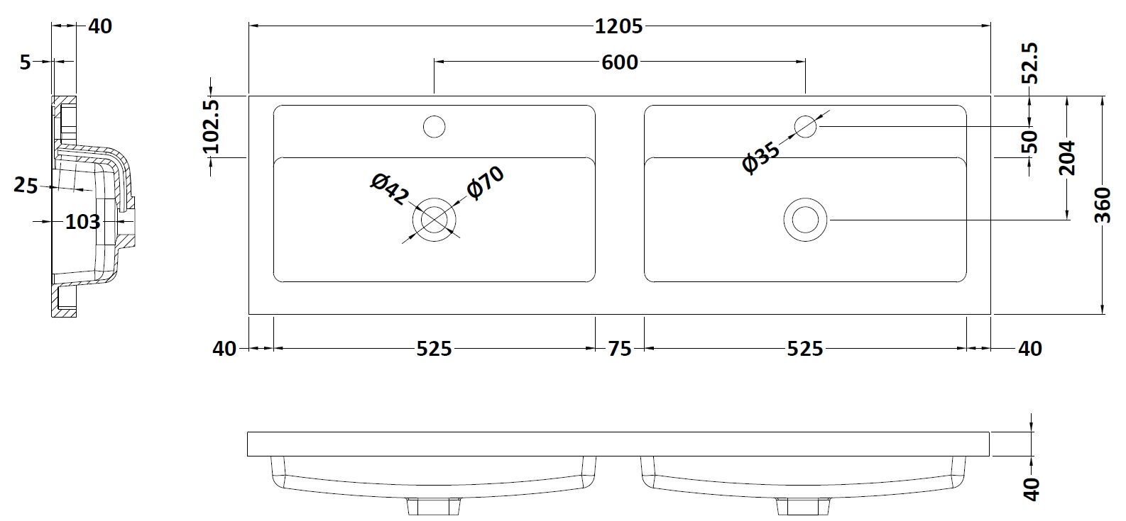 1200mm Double Polymarble Basin