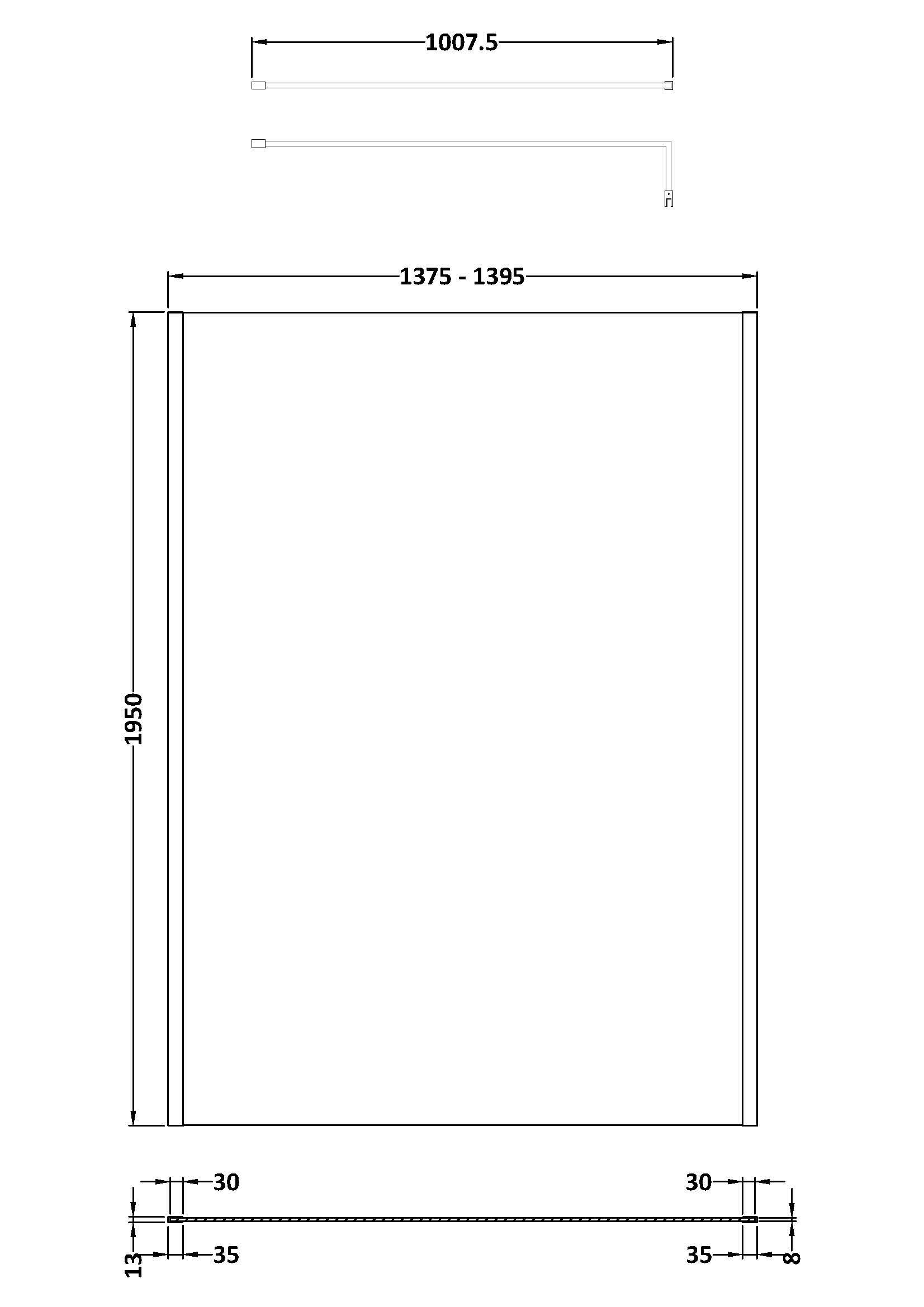 Hudson Reed 1400mm Outer Framed Wetroom Screen with Support Bar - 8mm Glass - Brushed Brass