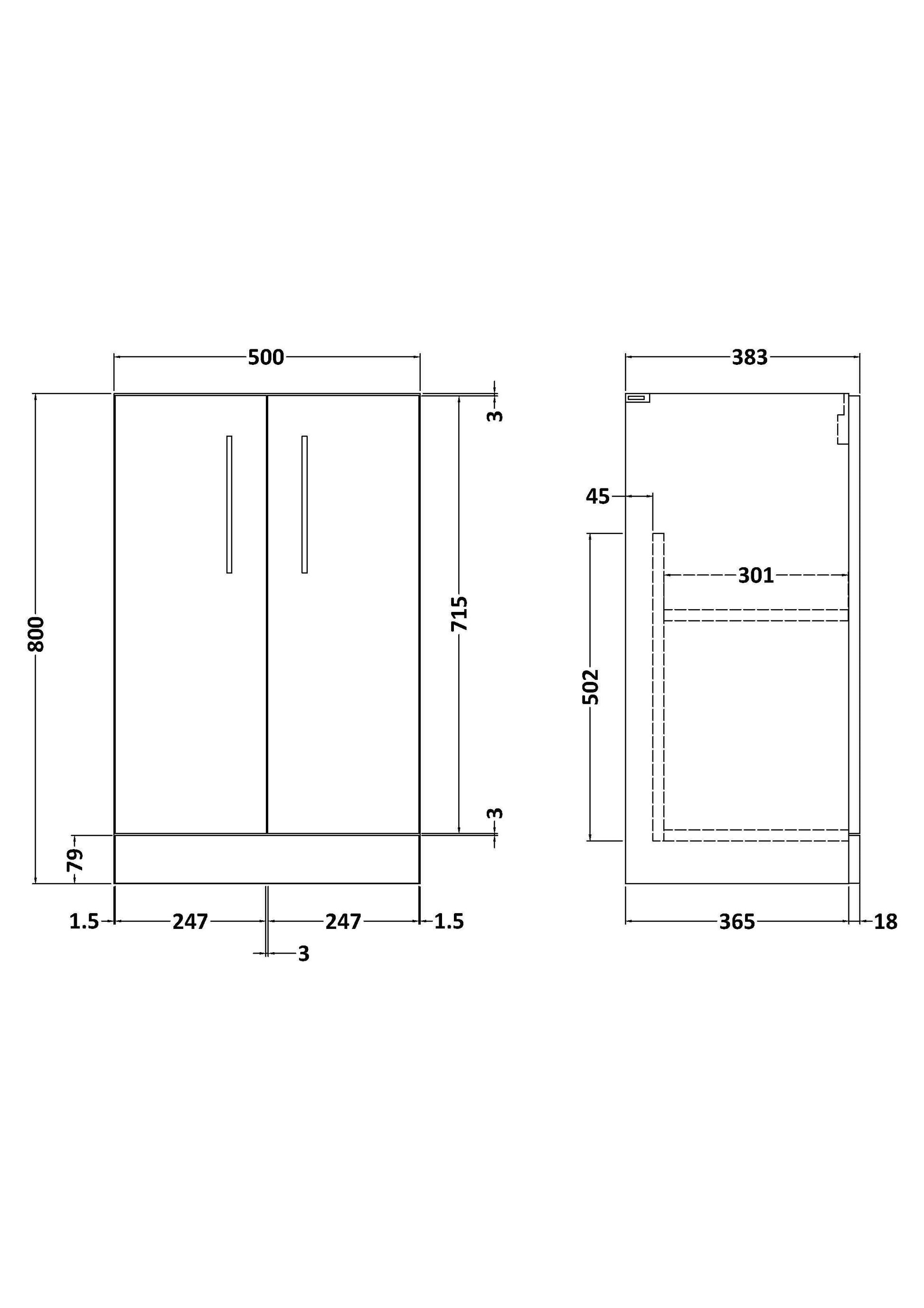 500mm Floor Standing 2 Door Unit (365 Deep)