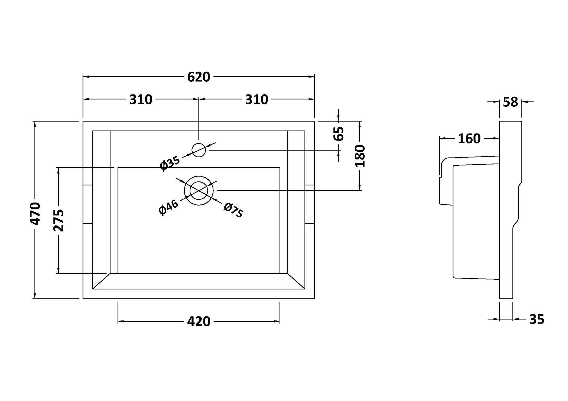 600mm Traditional Basin 1 Tap Hole