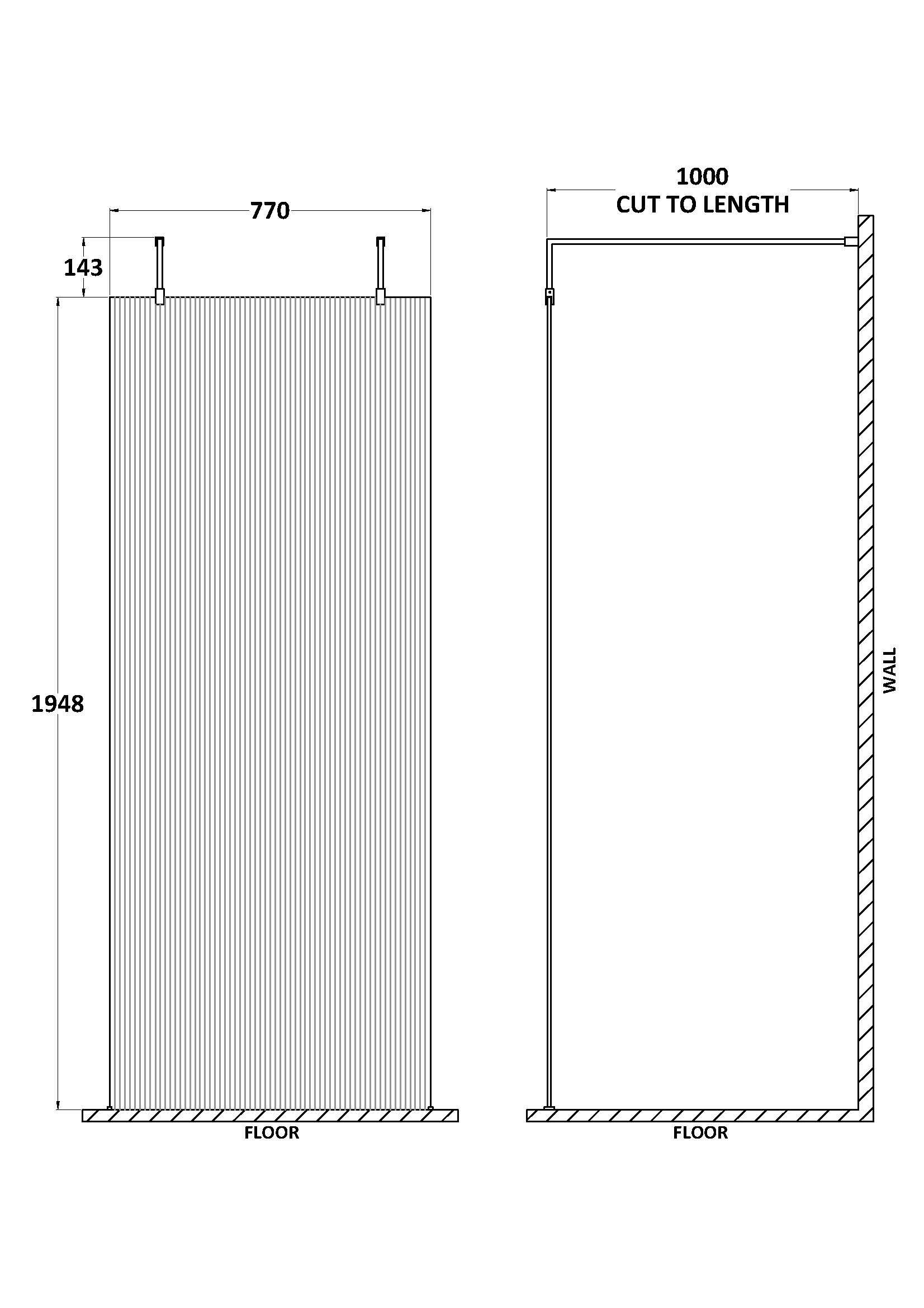 Hudson Reed 770mm Frameless Matt Black Fluted Wetroom Screen With Arms And Feet