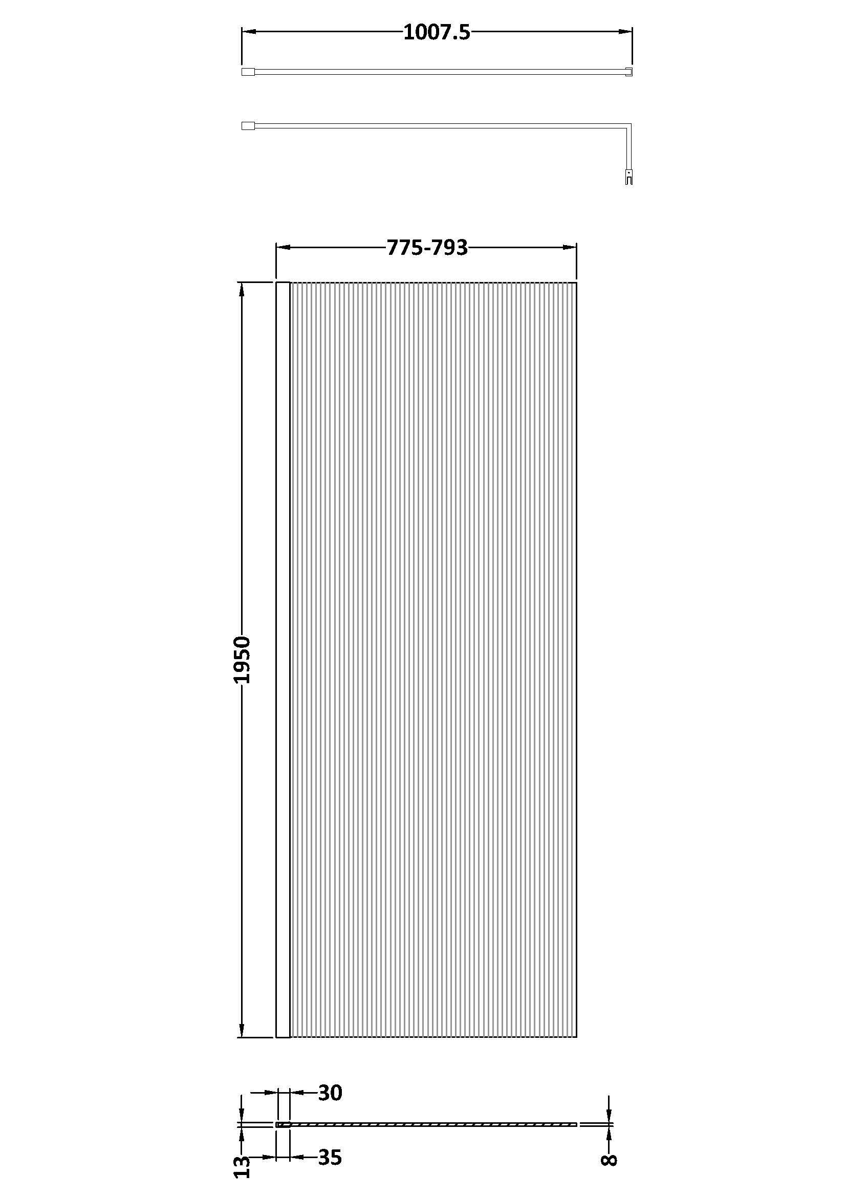 Hudson Reed Fluted Wetroom Screens 800mm x 1950mm Fluted Wetroom Screen Inc' Bar - Polished Chrome