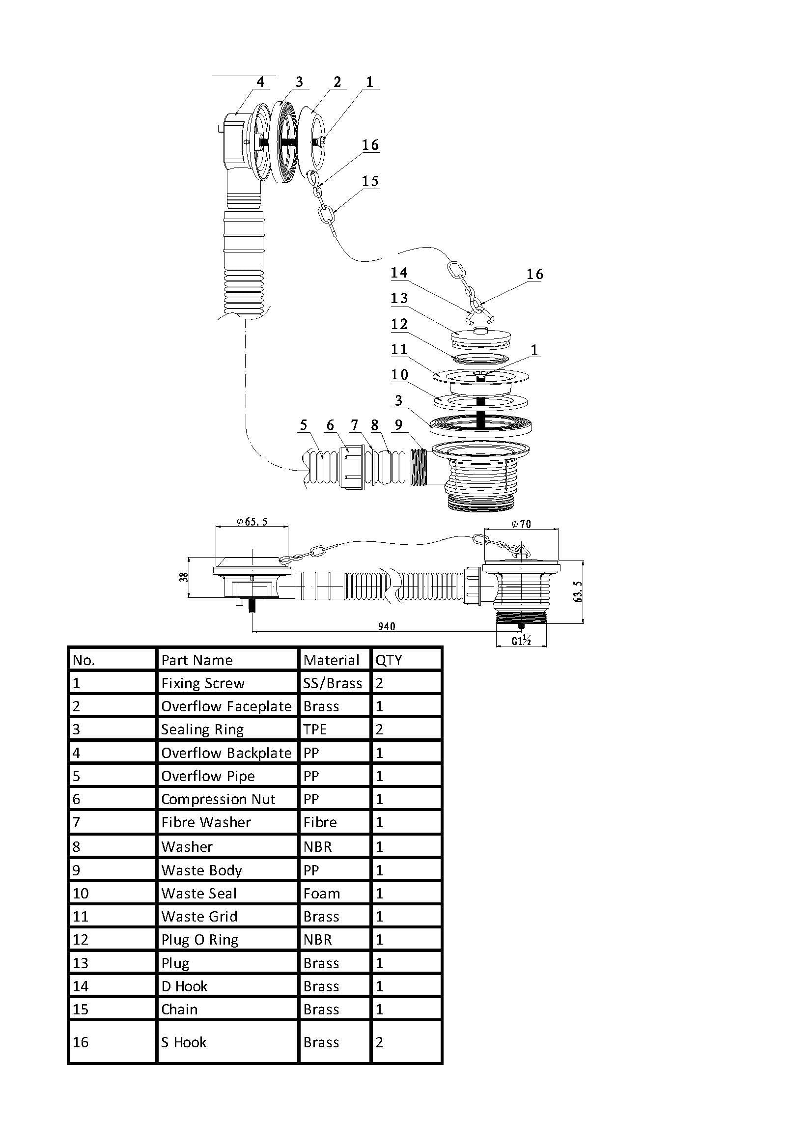 BC Sanitan Nickel Plug and Chain Concealed Bath Waste