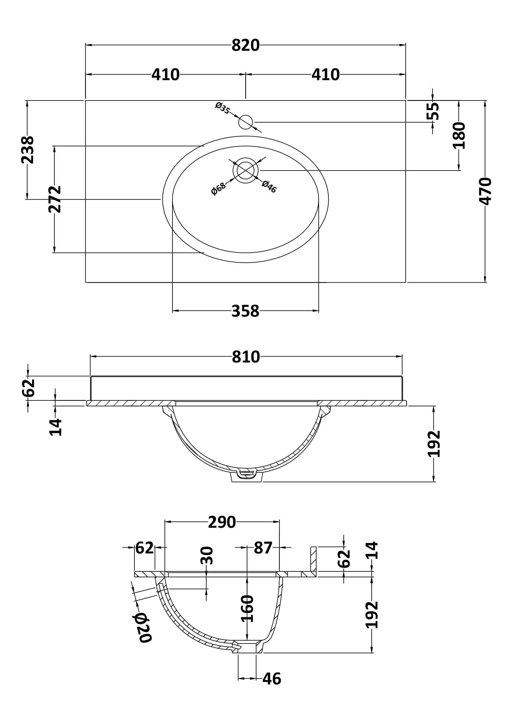 Bayswater 800mm Single Bowl 1 Tap Hole