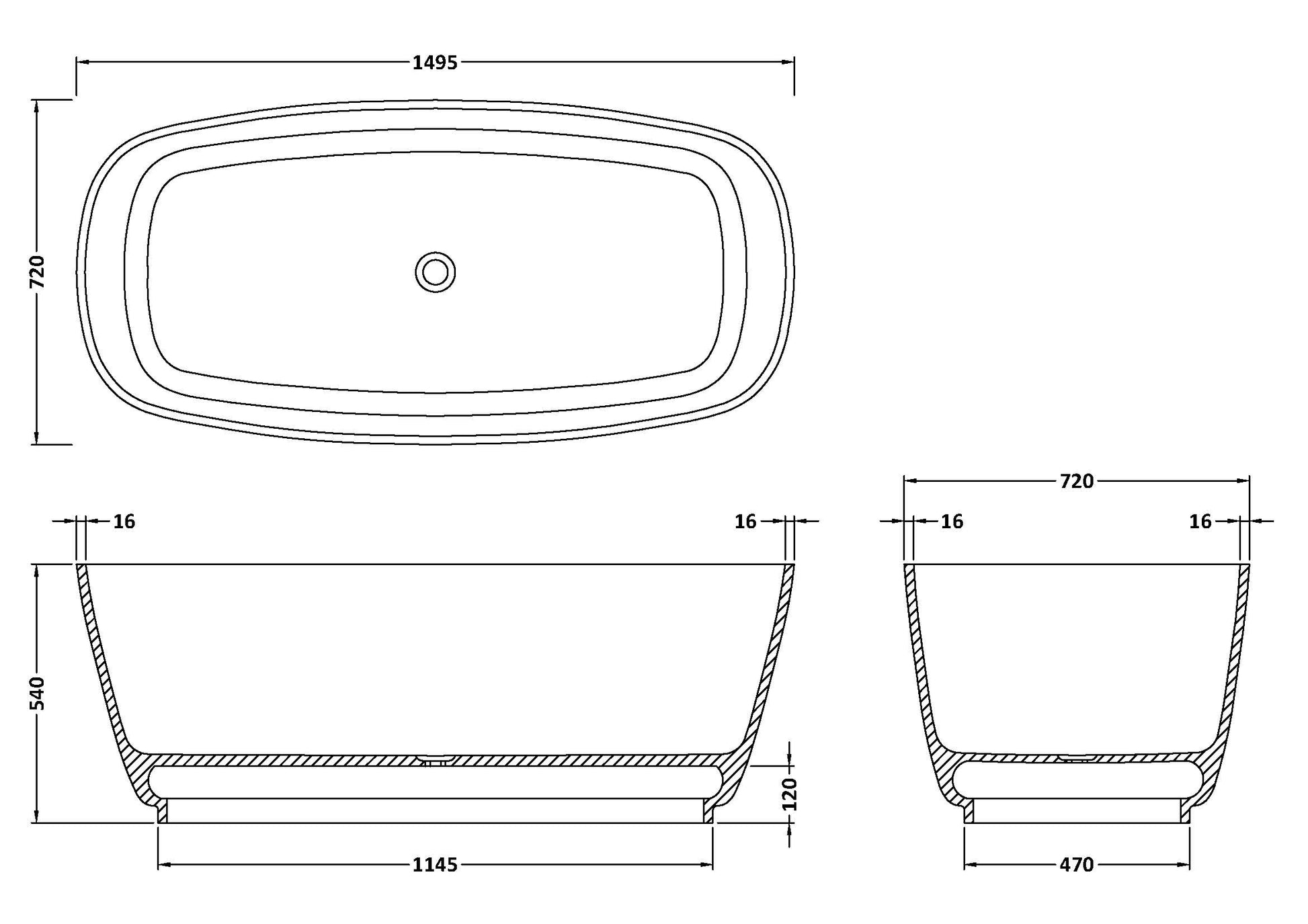 BC Designs Divita 1495mm Polished White Freestanding Bath