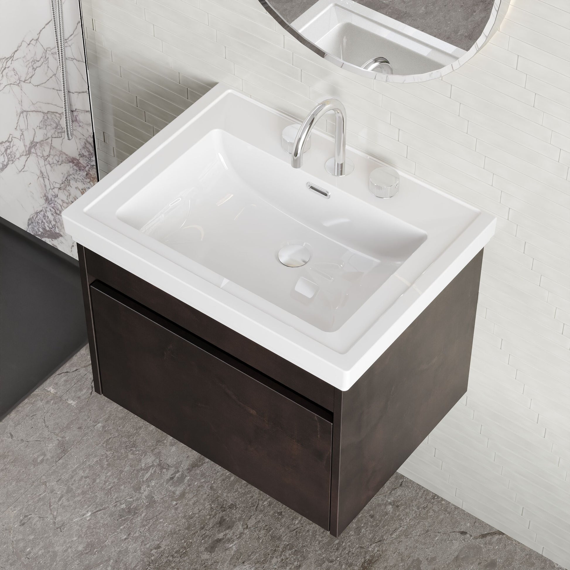 BC Designs Loftwood 600mm 1 Drawer Metallic Slate Wall Hung Vanity Unit With 3 Tap Holes Fireclay Basin