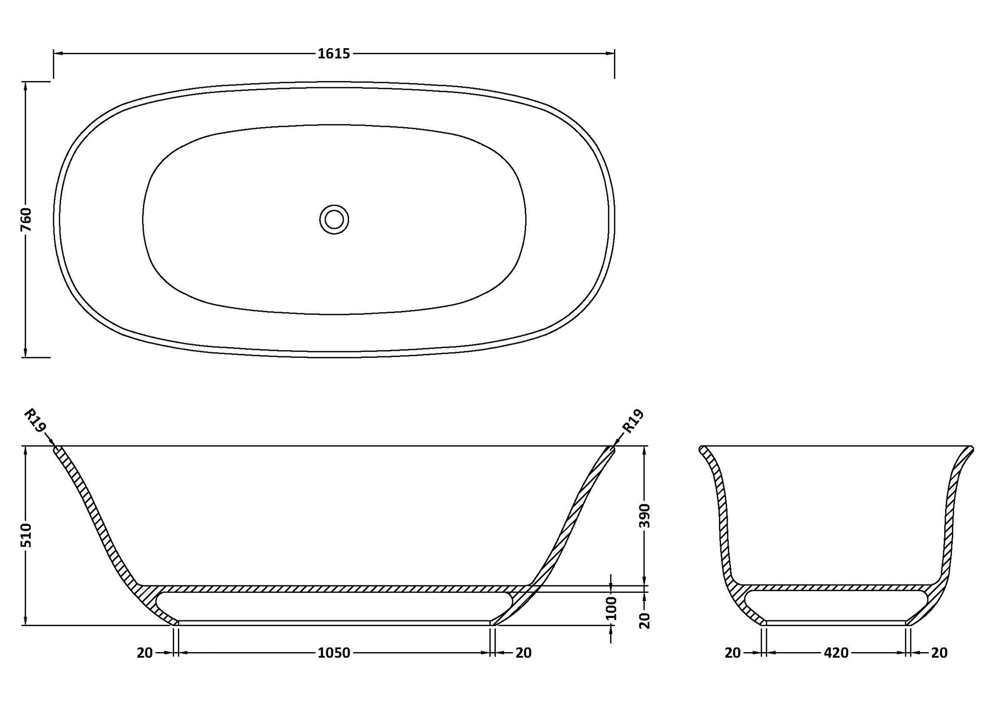 BC Designs Omnia 1615mm Freestanding Bath