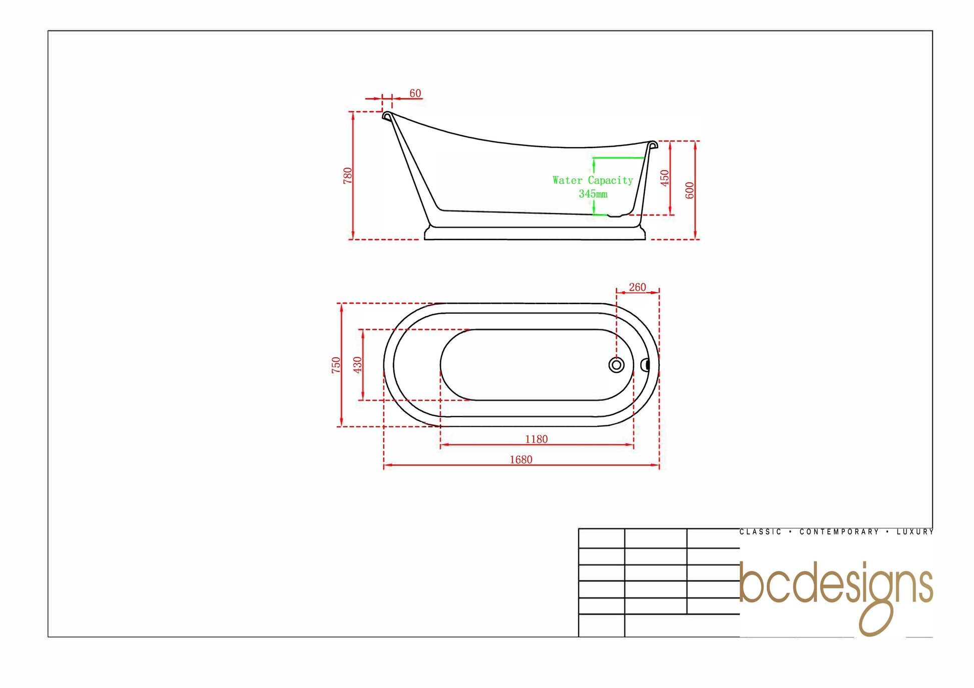 BC Designs Slipper Freestanding Slipper Bath - Sanded - 1700mm - Sanded