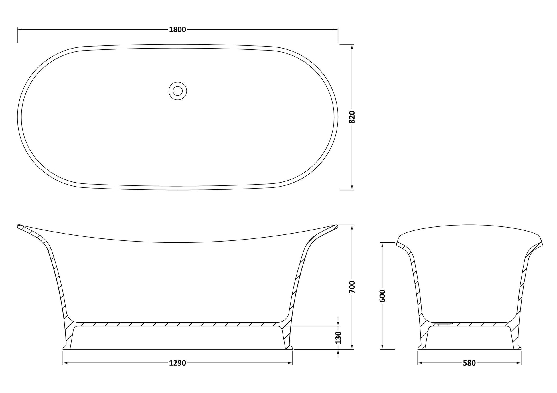 BC Designs Wivenhoe 1800mm Matt White Freestanding Bath