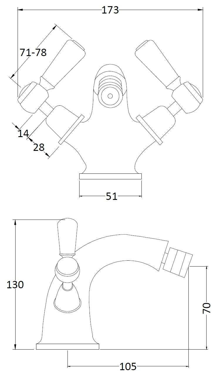 Old London Black Topaz With Lever Handle Bidet Tap - Chrome