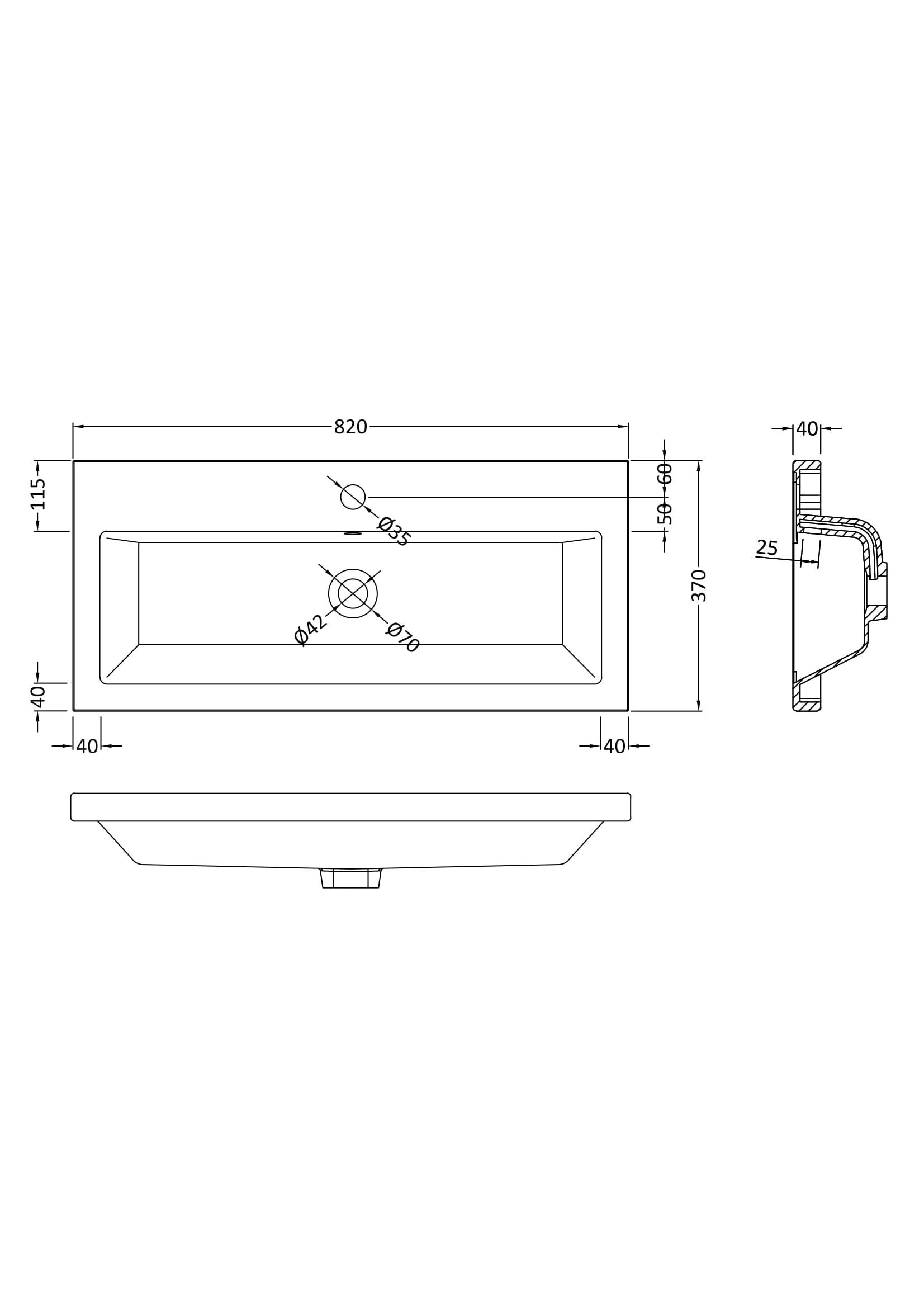 Ceramic Rear Tap Basin 805 x 360mm