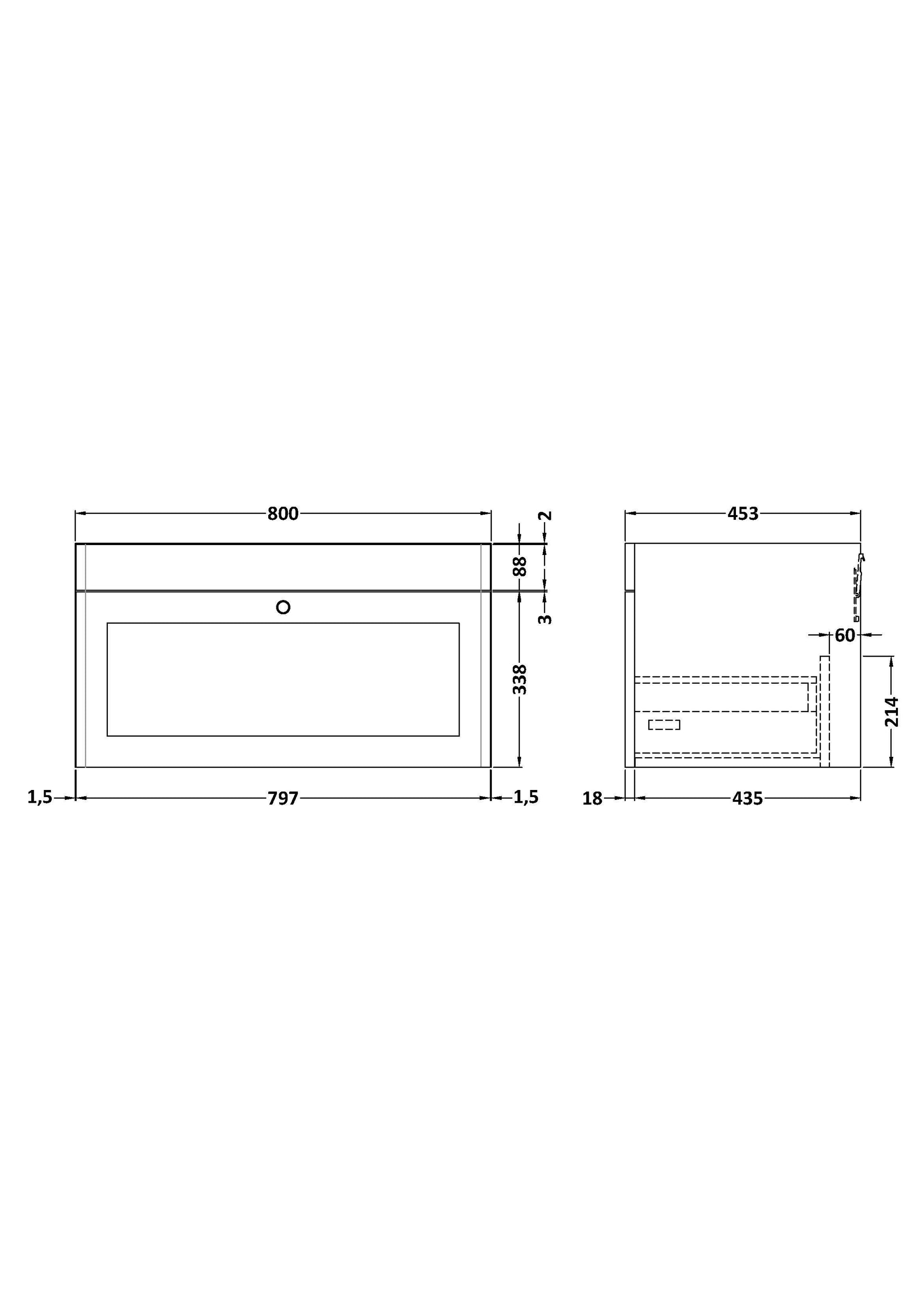 Classique Wall Hung 1 Drawer Unit, 800mm