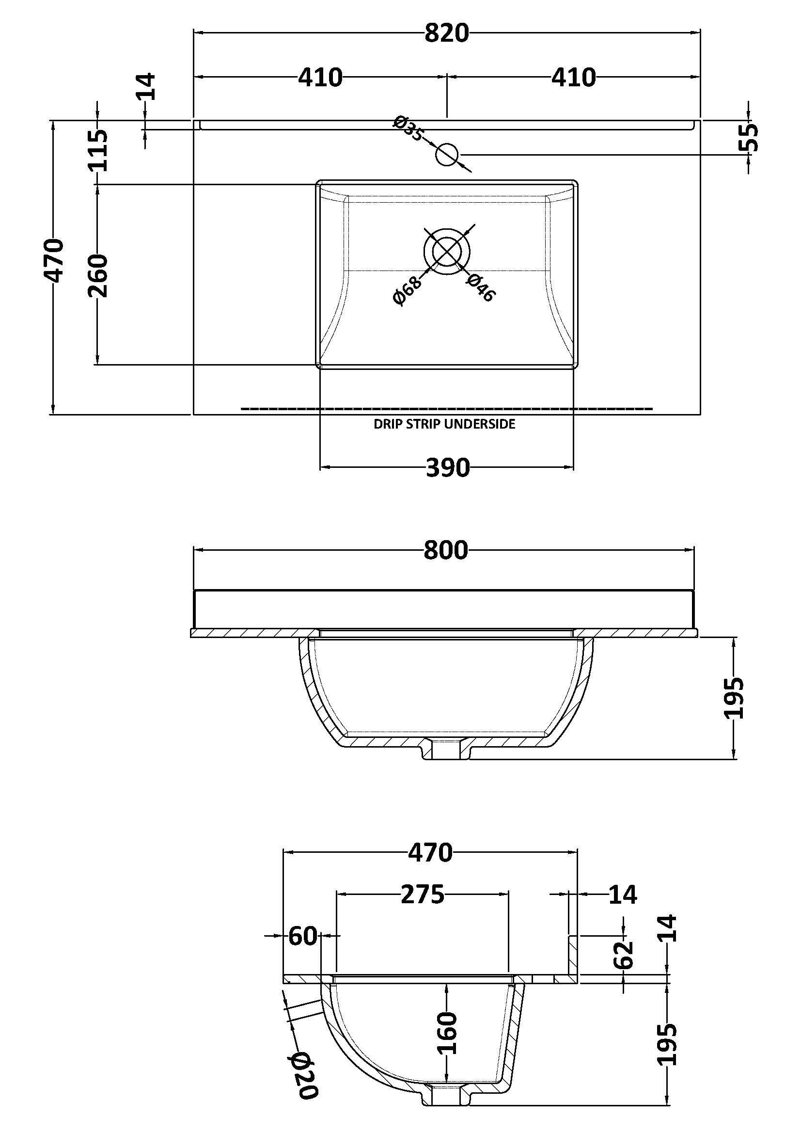 Components Single Bowl Marble Worktop Top 1 Tap Hole, 800mm