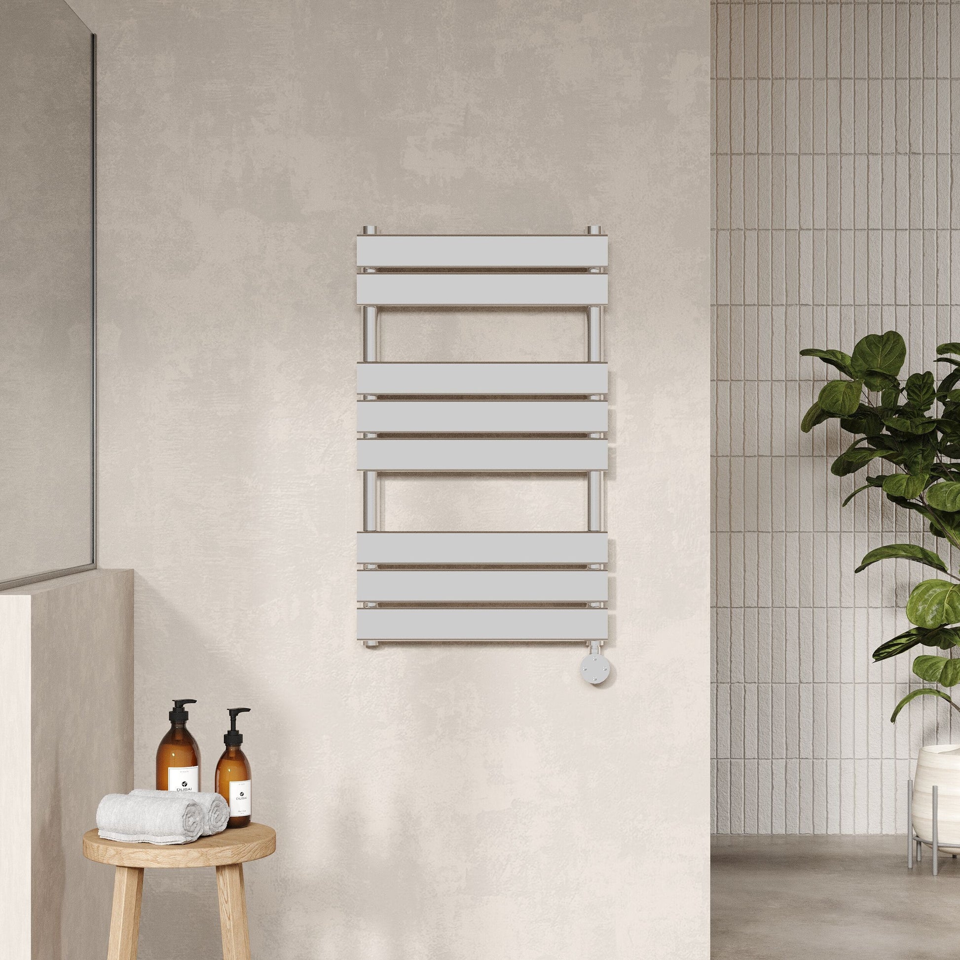 Hudson Reed 840mm x 500mm 8 Bar Chrome Vertical Square Electric Flat Towel Rail