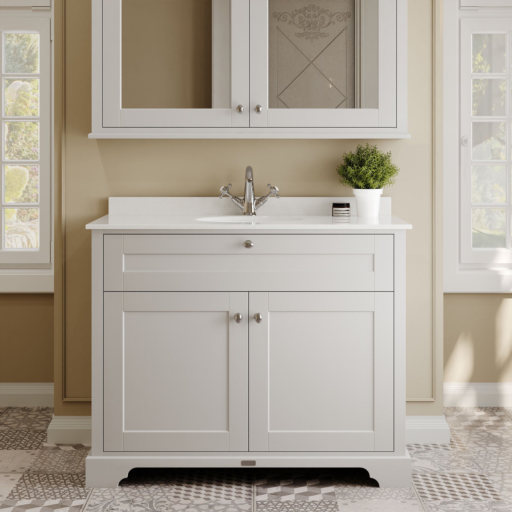 Old London Floor Standing 2 Door Vanity Unit with 1 Tap Hole White Marble Top 1000mm - Timeless Sand