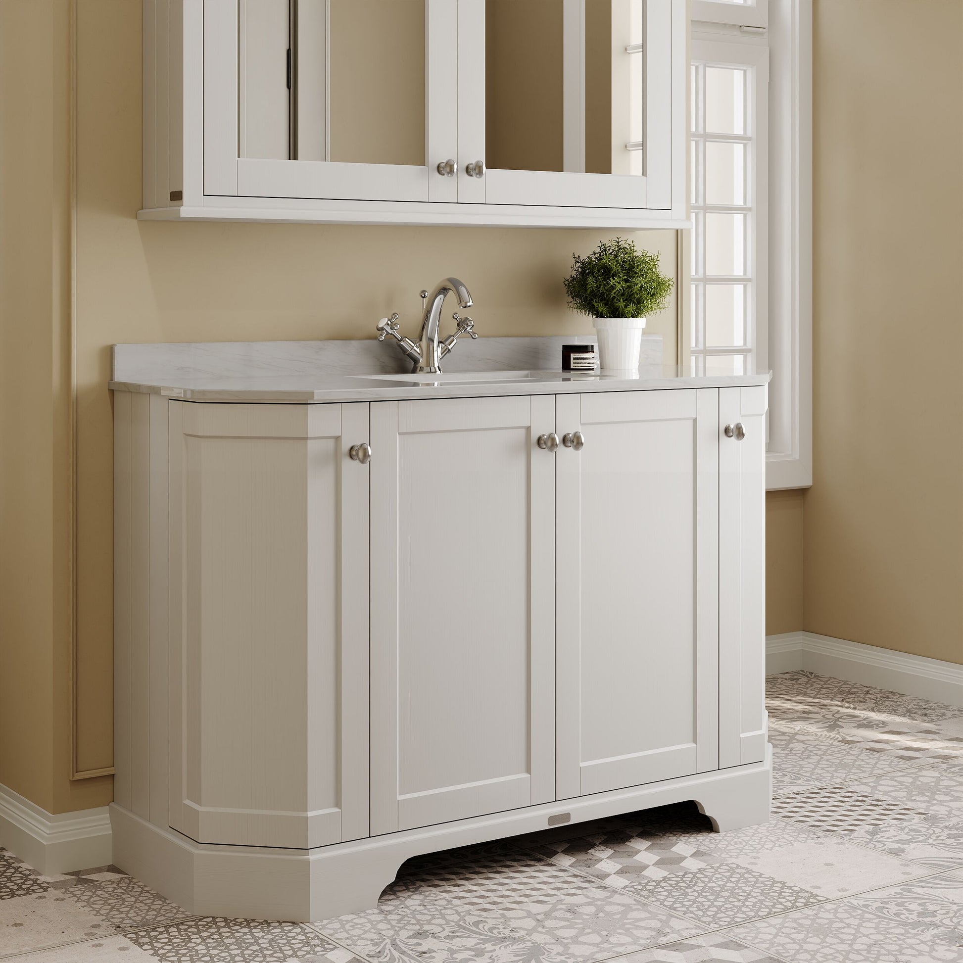 Old London Floor Standing 4 Door Angled Vanity Unit with 1 Tap Hole Grey Marble Top 1200mm - Timeless Sand