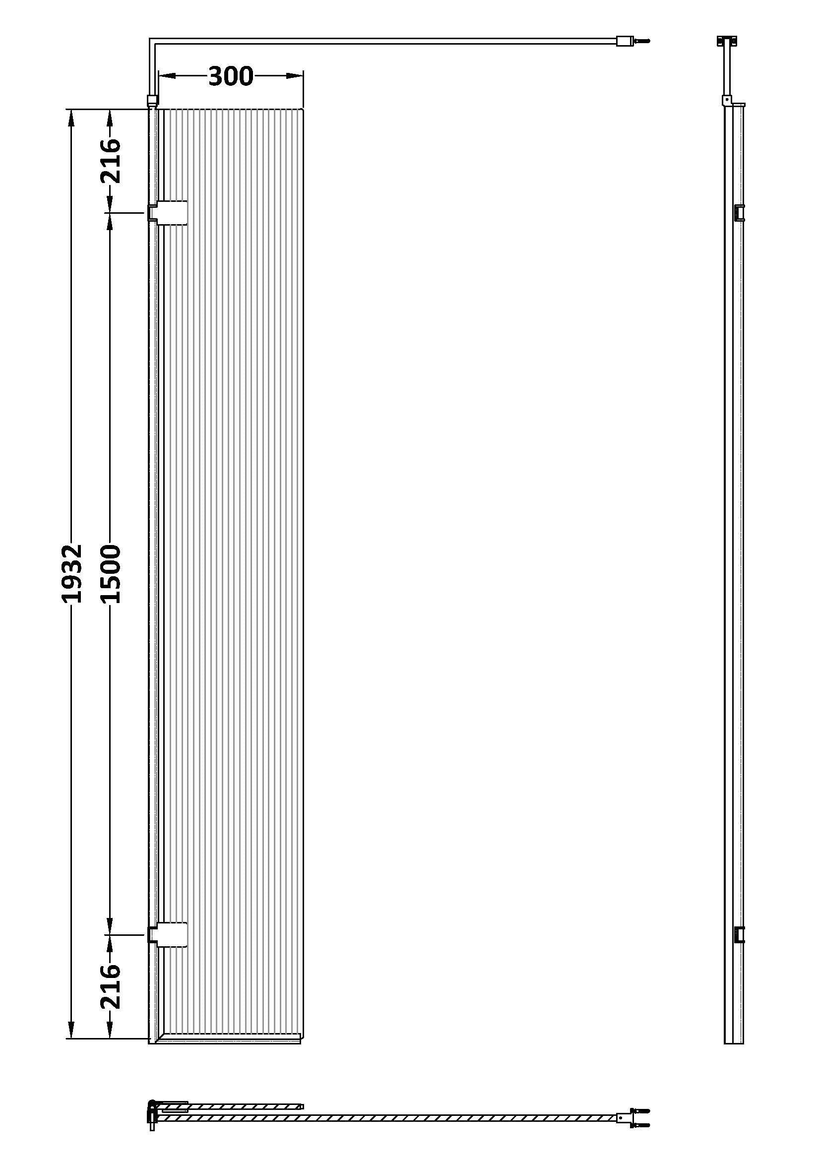 Hudson Reed Fluted Wetroom Fluted Wetroom 8mm Toughened Safety Glass Swing Return Screen, 300mm x 1950mm - Brushed Brass
