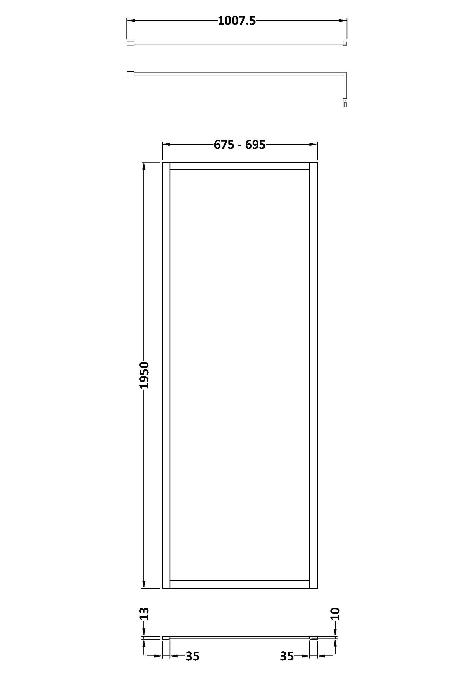 Hudson Reed Full Outer Frame Wetroom Screens Full Outer Frame Wetroom 8mm Toughened Safety Glass Screen & Support Bar 1950mm x 700mm x 8mm - Matt Black