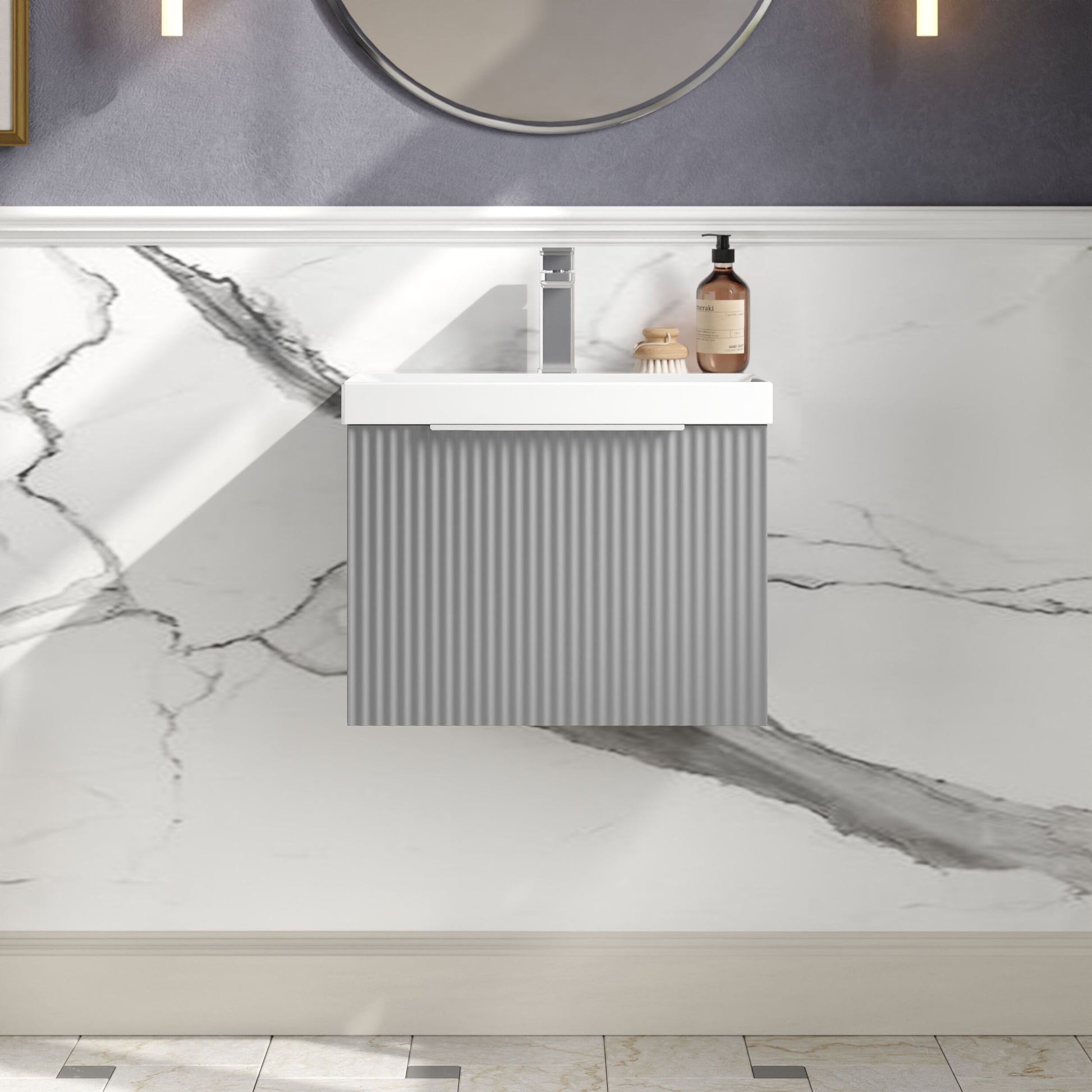 Hudson Reed Fluted 500mm Wall Hung Single Drawer Vanity and Thin-Edge Basin - Satin Grey