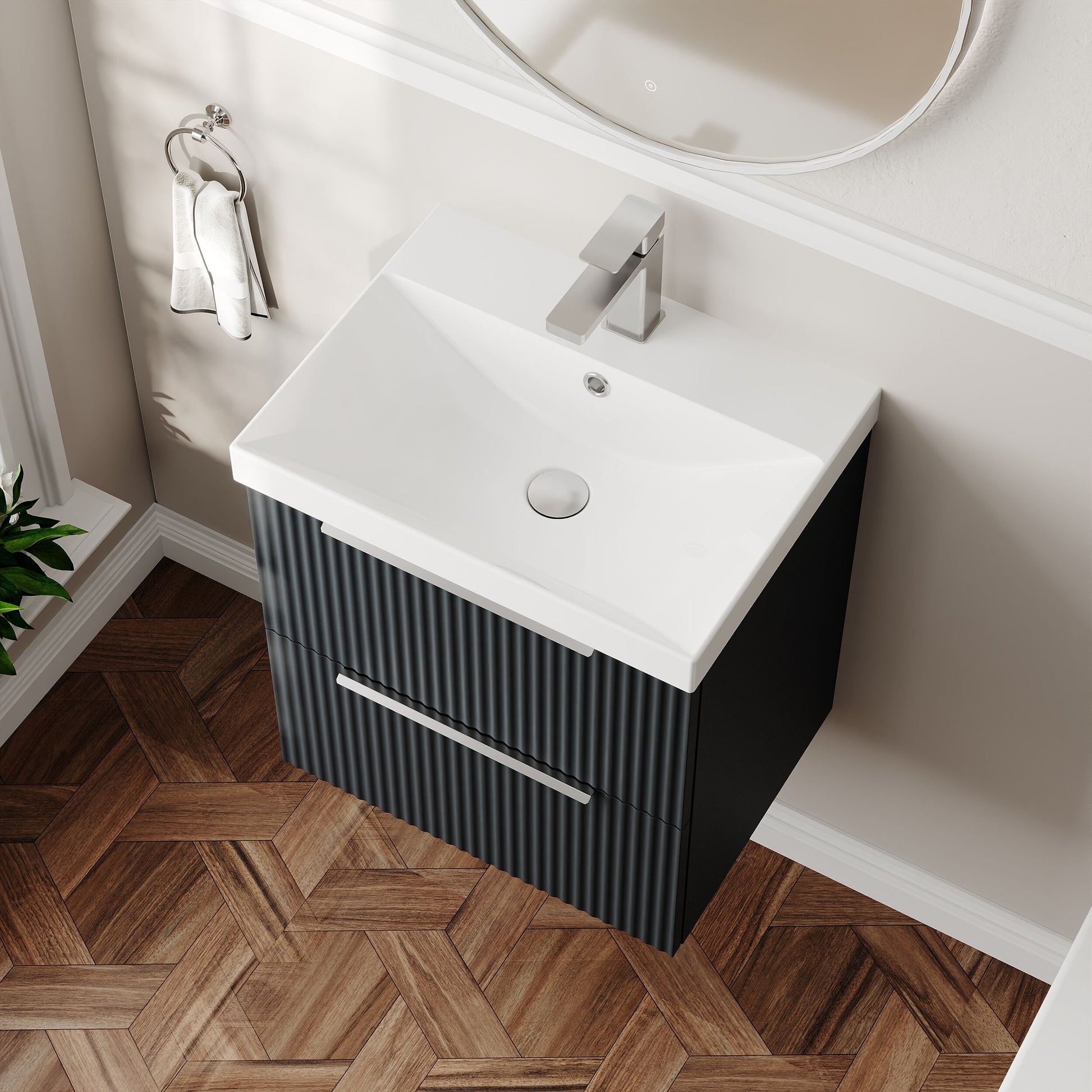 Hudson Reed Fluted 500mm Wall Hung 2-Drawer Vanity and Thin-Edge Basin - Soft Black