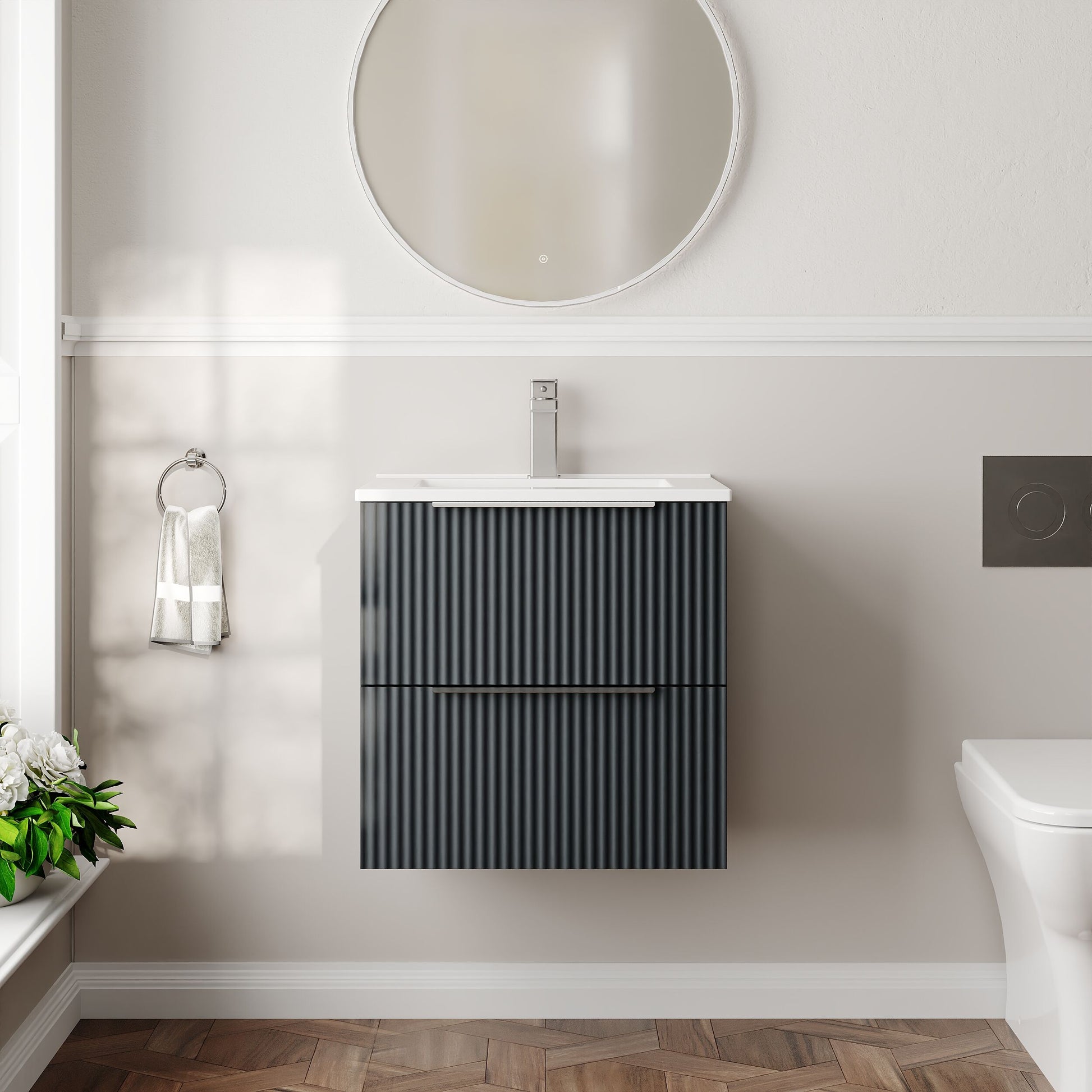 Hudson Reed Fluted 500mm Wall Hung 2-Drawer Vanity and Minimalist Basin - Soft Black