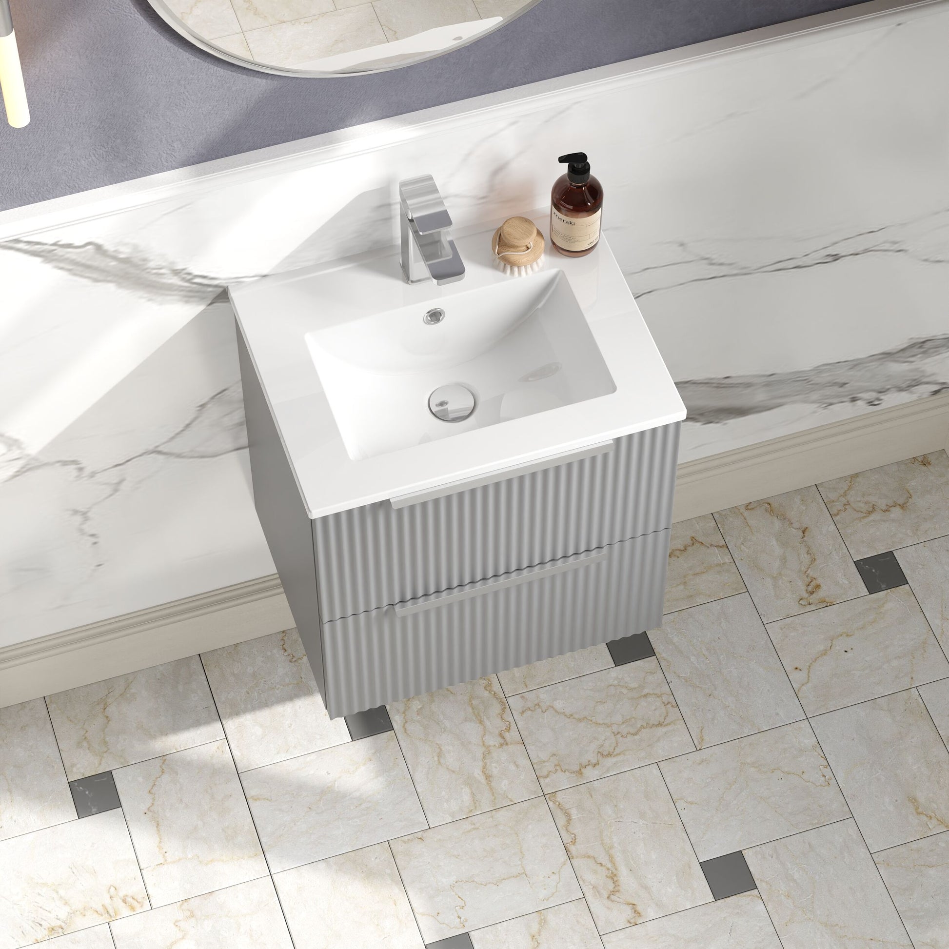 Hudson Reed Fluted 500mm Wall Hung 2-Drawer Vanity and Minimalist Basin - Satin Grey