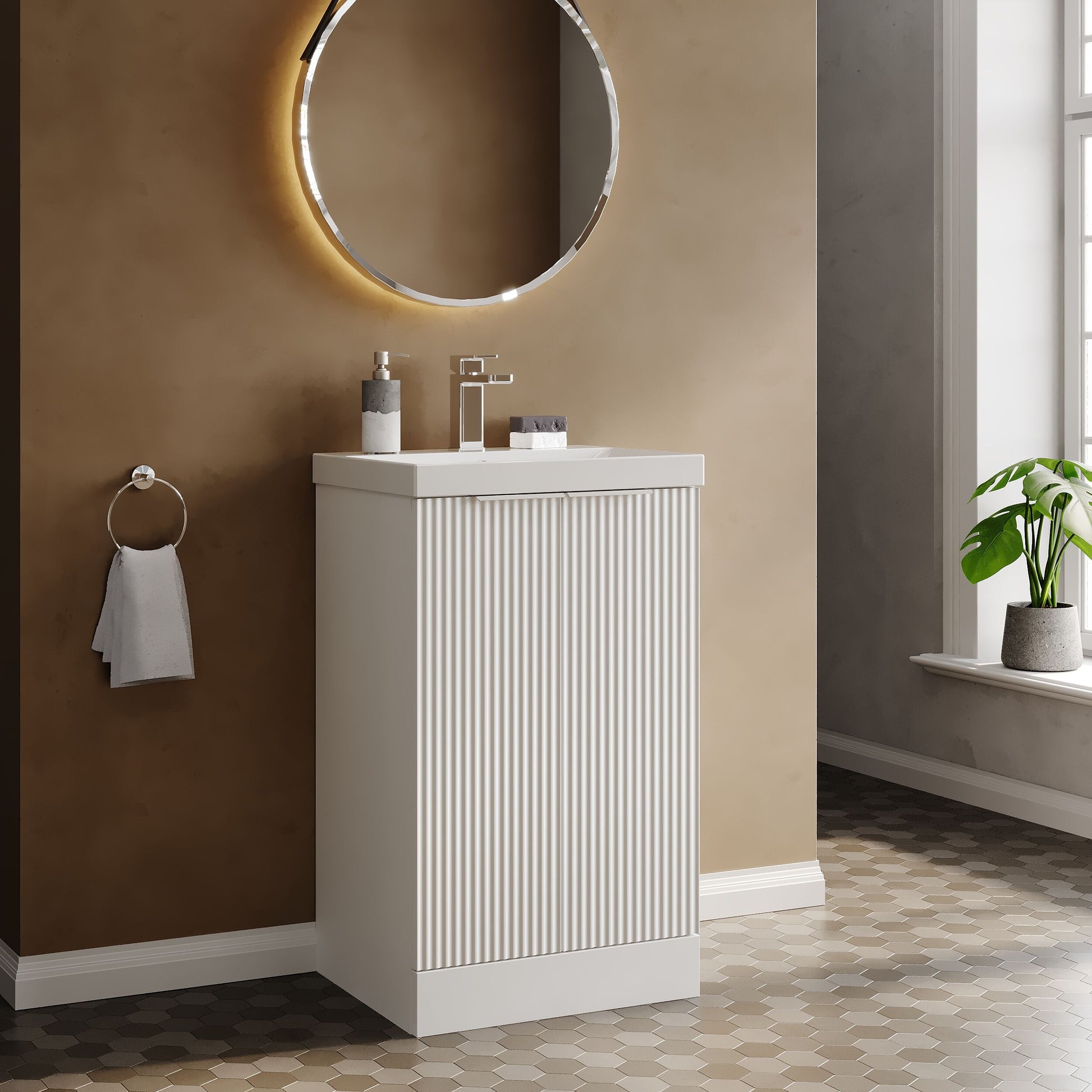 Hudson Reed Fluted 500mm Floor Standing 2-Door Vanity and Thin-Edge Basin - Satin White