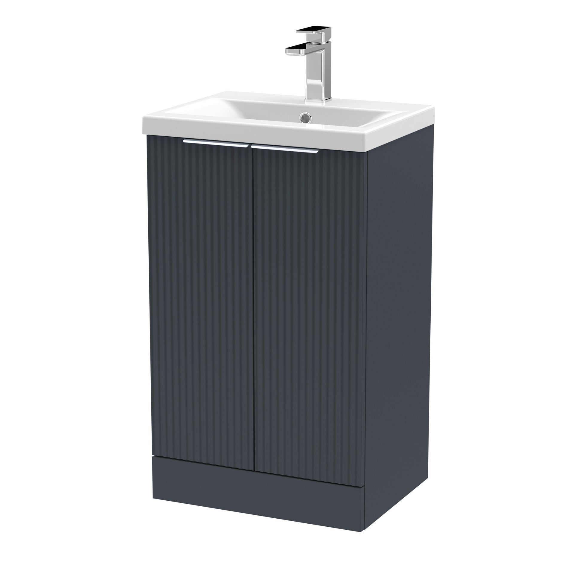 Balterley Fluted Front Floor Standing 2 Door Vanity Basin Unit with Ceramic Basin 500mm - Dark Grey