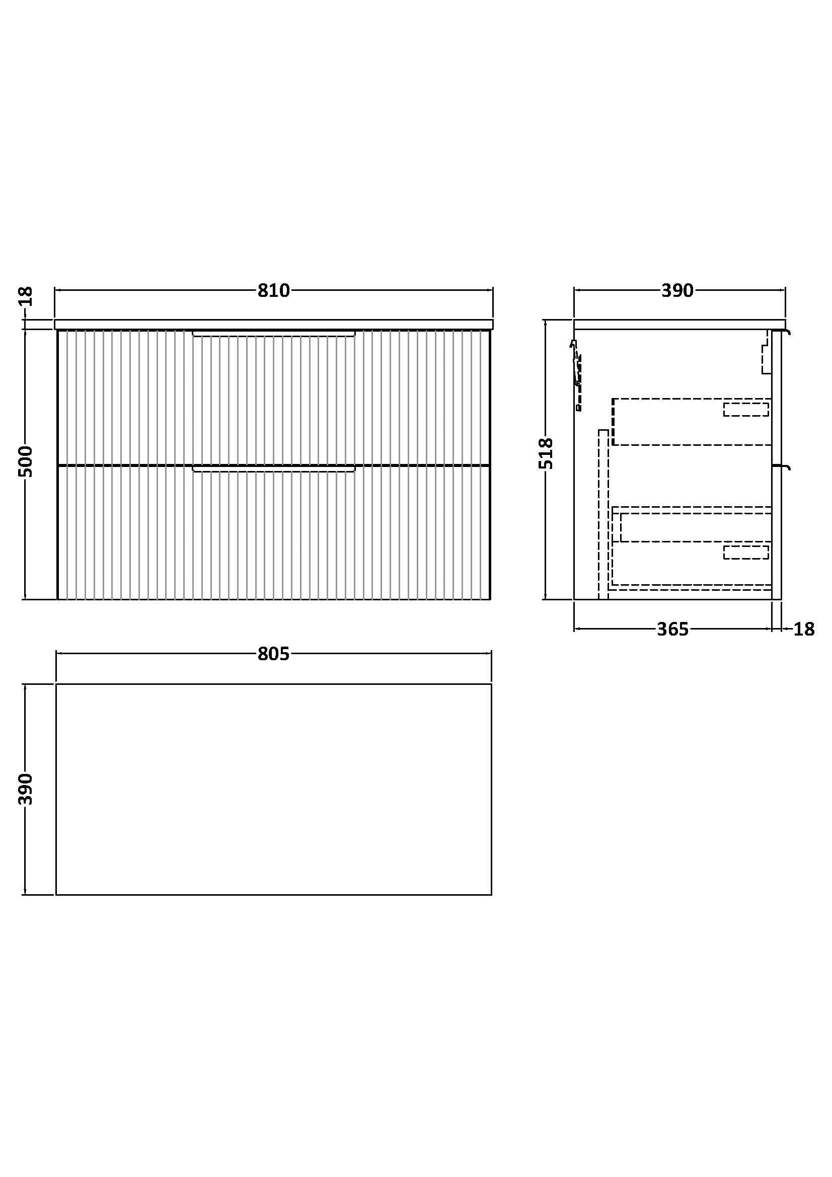 Hudson Reed Fluted 800mm Wall Hung 2-Drawer Vanity and Worktop - Soft Black