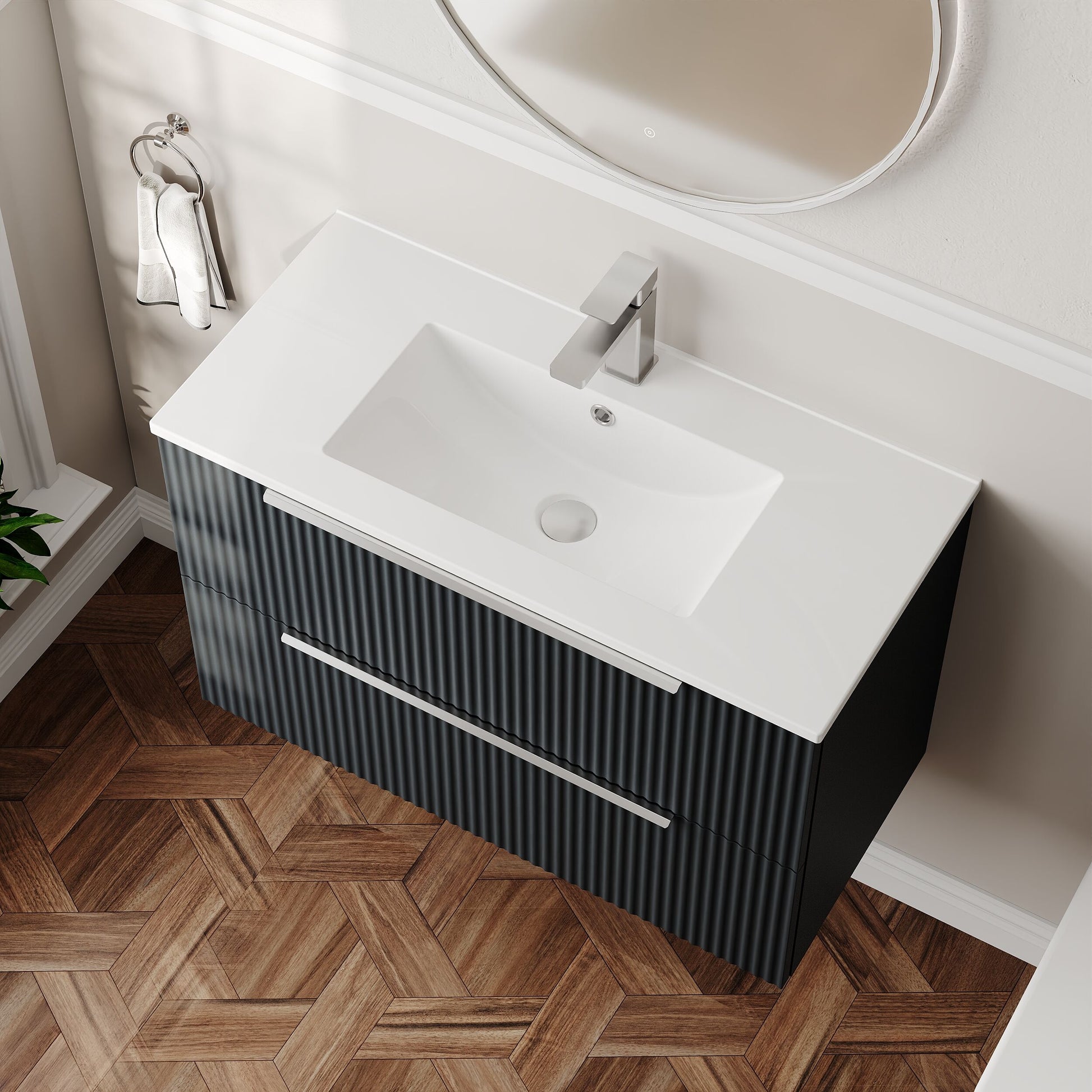 Hudson Reed Fluted 800mm Wall Hung 2-Drawer Vanity and Minimalist Basin - Soft Black