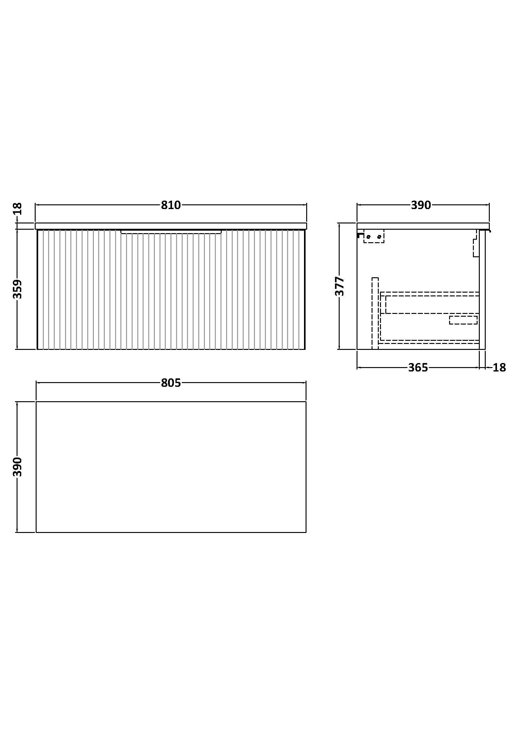Hudson Reed Fluted 800mm Wall Hung Single Drawer Vanity and Worktop - Soft Black