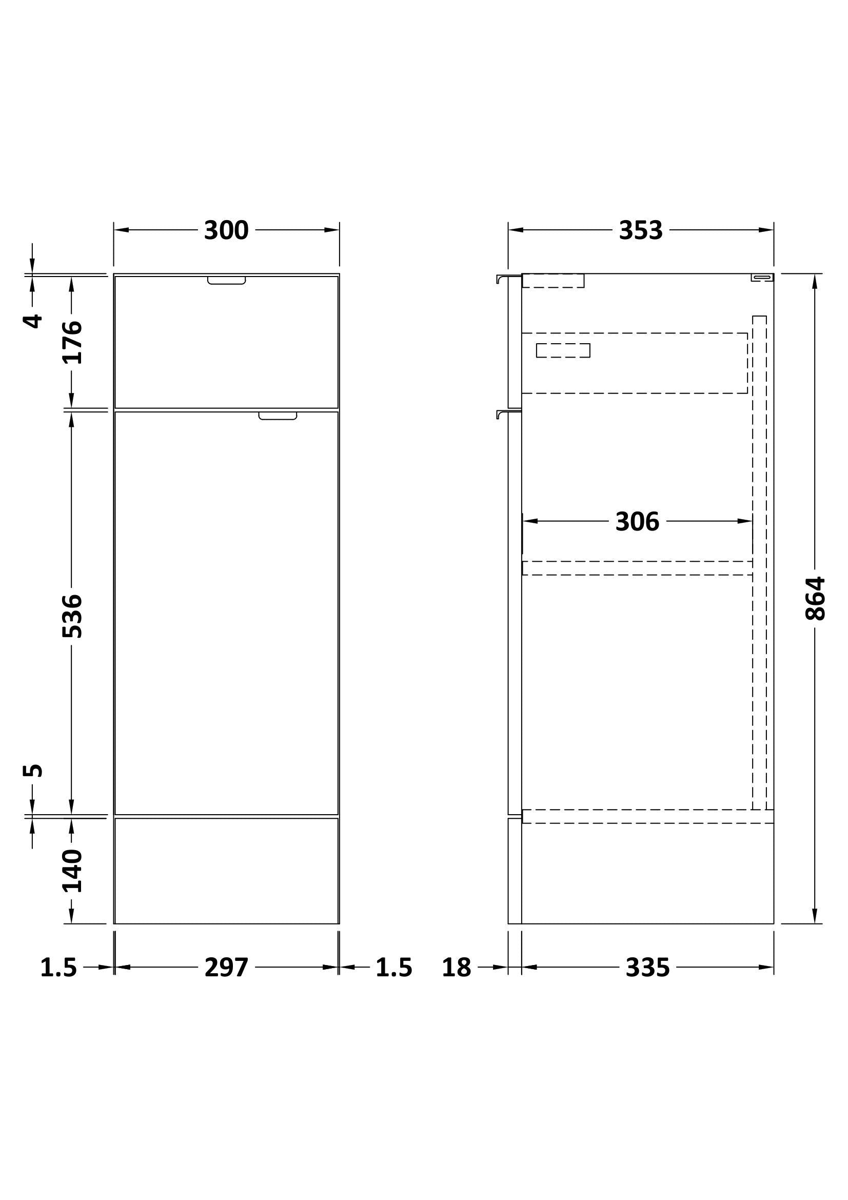 Hudson Reed Fusion 300mm 1 Door Drawer Gloss Grey Floor Standing Cabinet With Handles