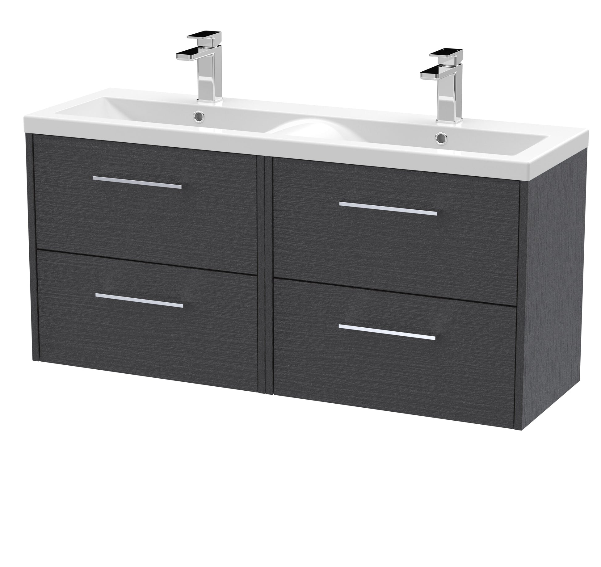 Hudson Reed Juno 1200mm Graphite Grey Wall Hung Double Basin Vanity Unit With Handles