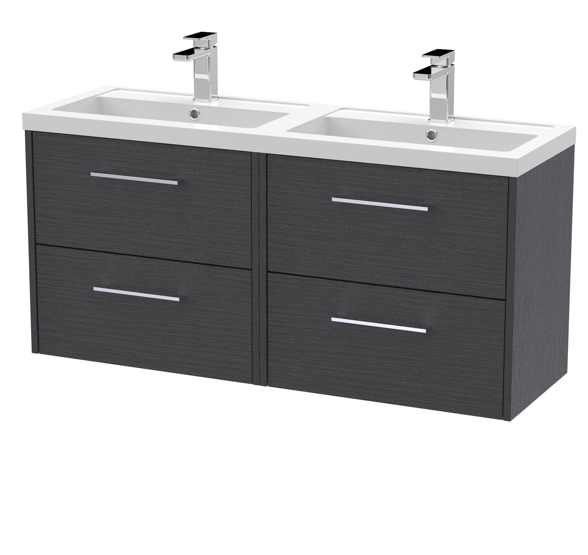 Hudson Reed Juno 1200mm Wall Hung 4-Door Vanity & Double Basin - Graphite Grey