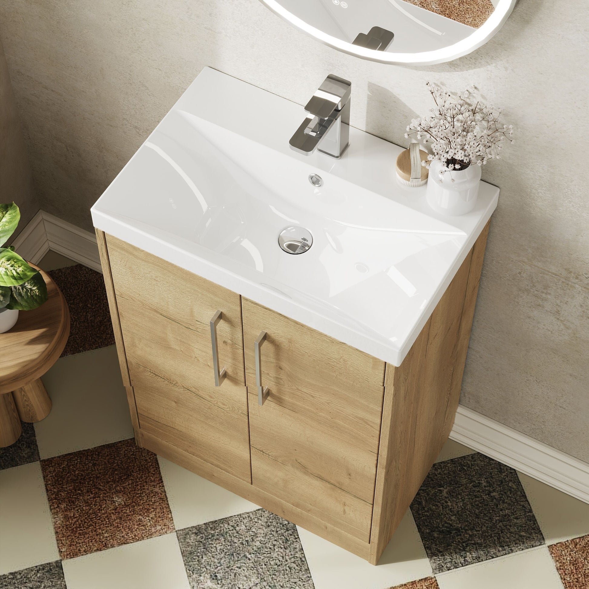 Hudson Reed Juno 600mm Floor Standing 2-Door Vanity & Thin-Edge 1 Tap Hole Basin - Autumn Oak