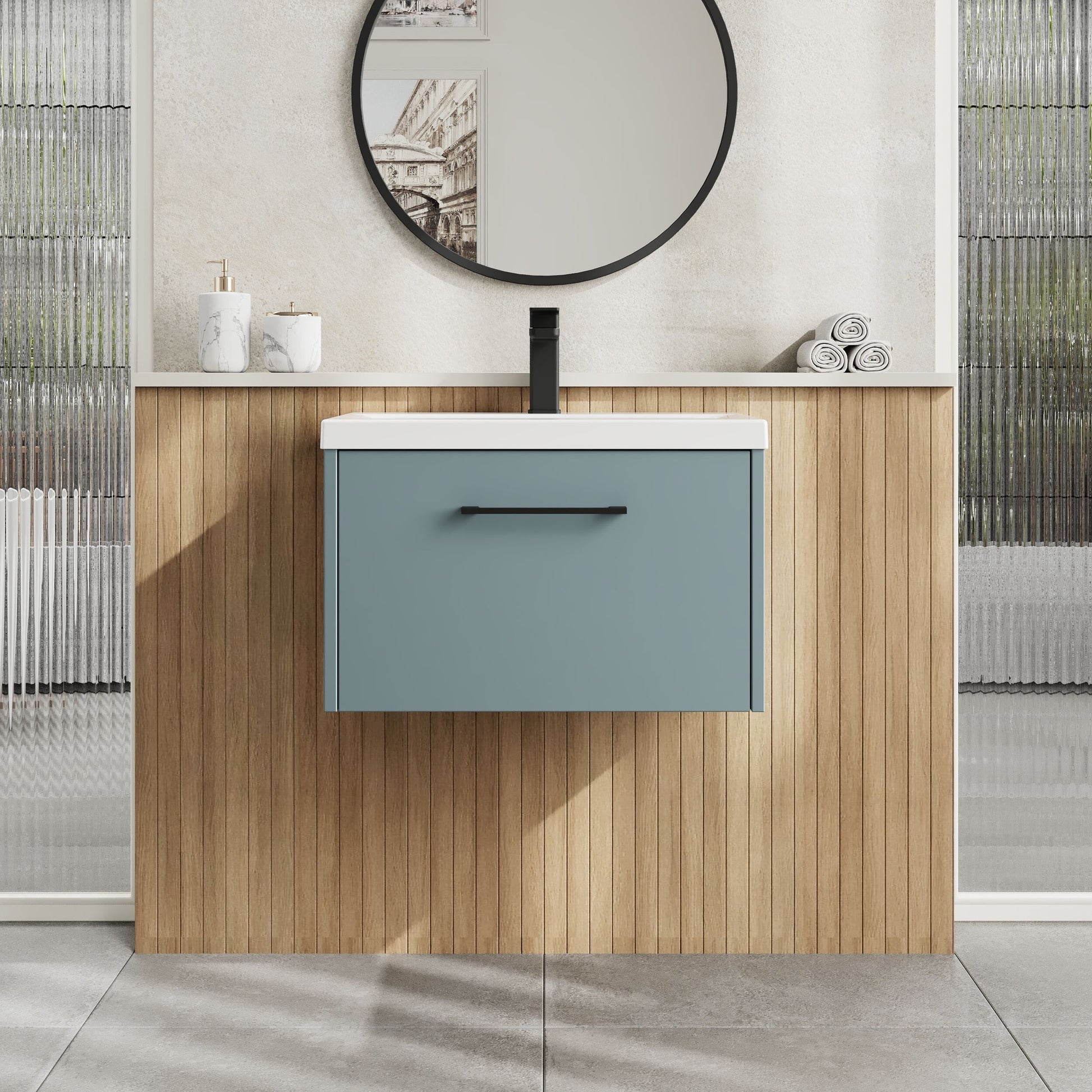 Hudson Reed Juno 600mm Wall Hung Single Drawer Vanity & Mid-Edge 1 Tap Hole Basin - Coastal Grey