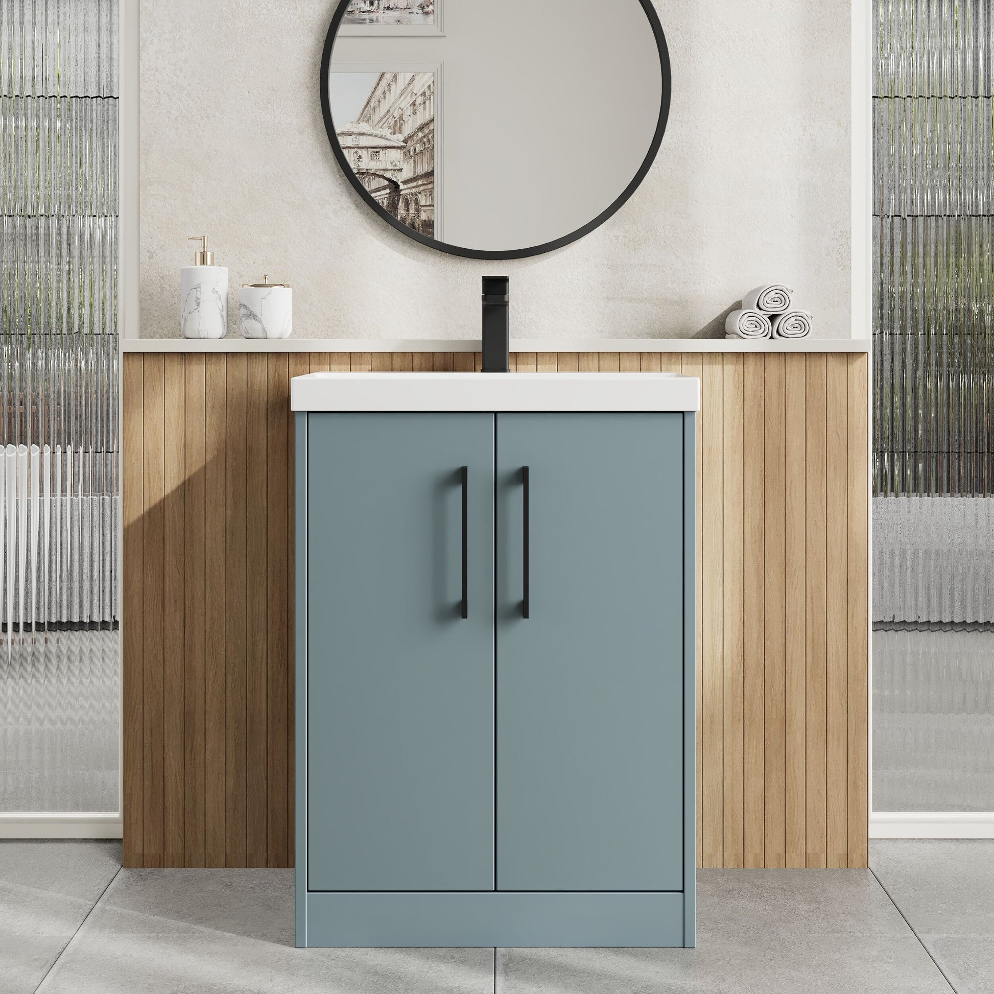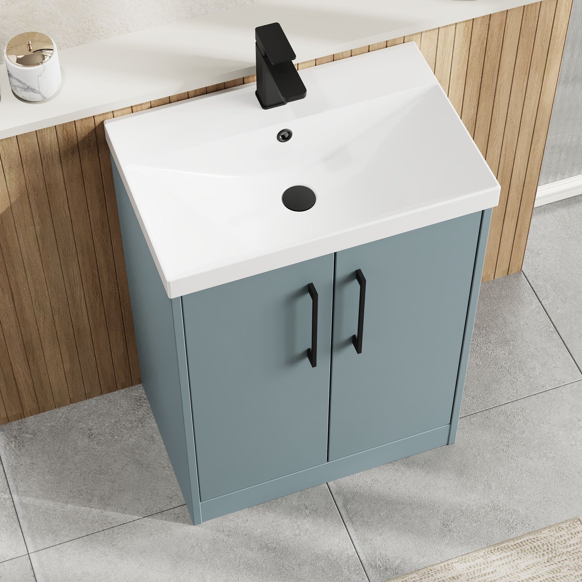 Hudson Reed Juno 600mm Floor Standing 2-Door Vanity & Thin-Edge 1 Tap Hole Basin - Coastal Grey