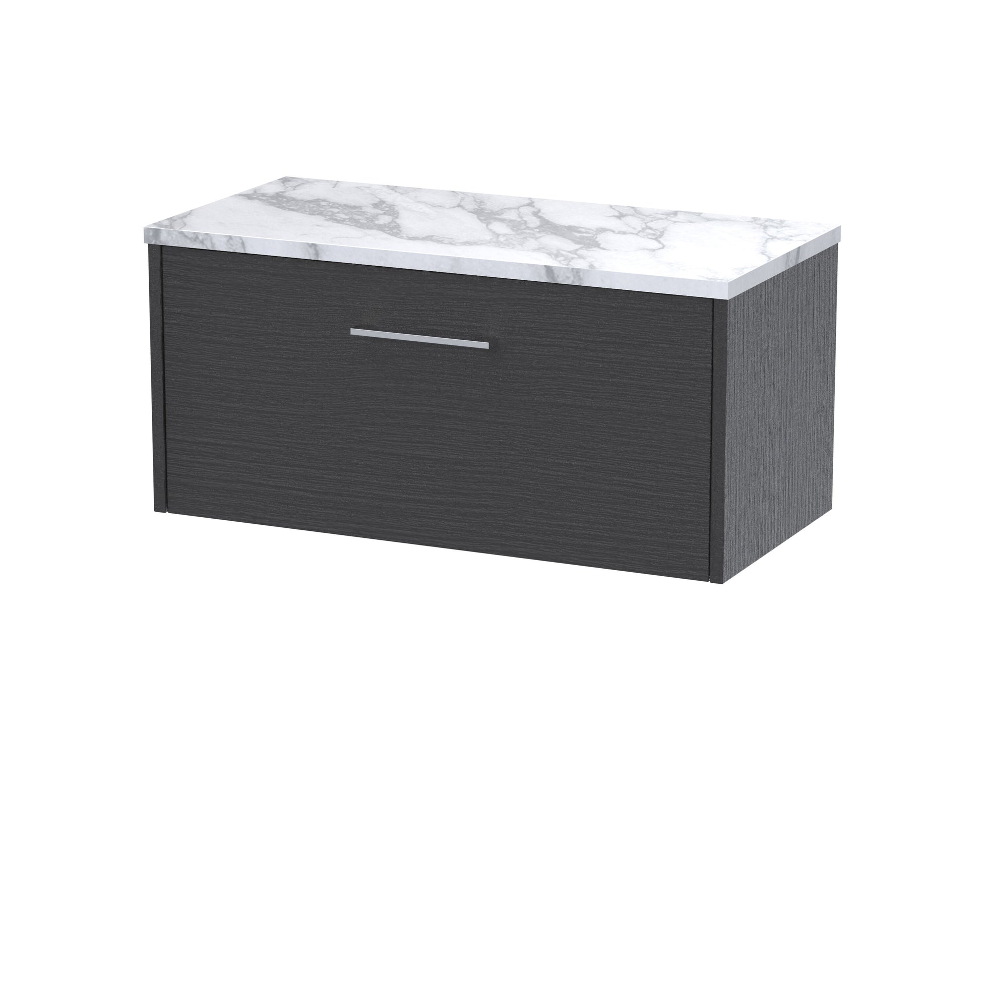 Hudson Reed Juno 800mm Graphite Grey Woodgrain Wall Hung Single Drawer Vanity Unit With Laminate Worktop