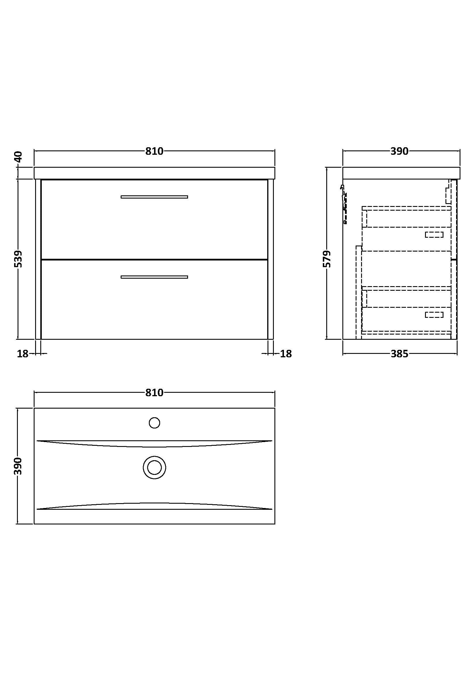 Hudson Reed Juno Wall Hung 2 Drawer Vanity Basin Unit & Mid-Edge Ceramic Basin, 800mm - Metallic Slate