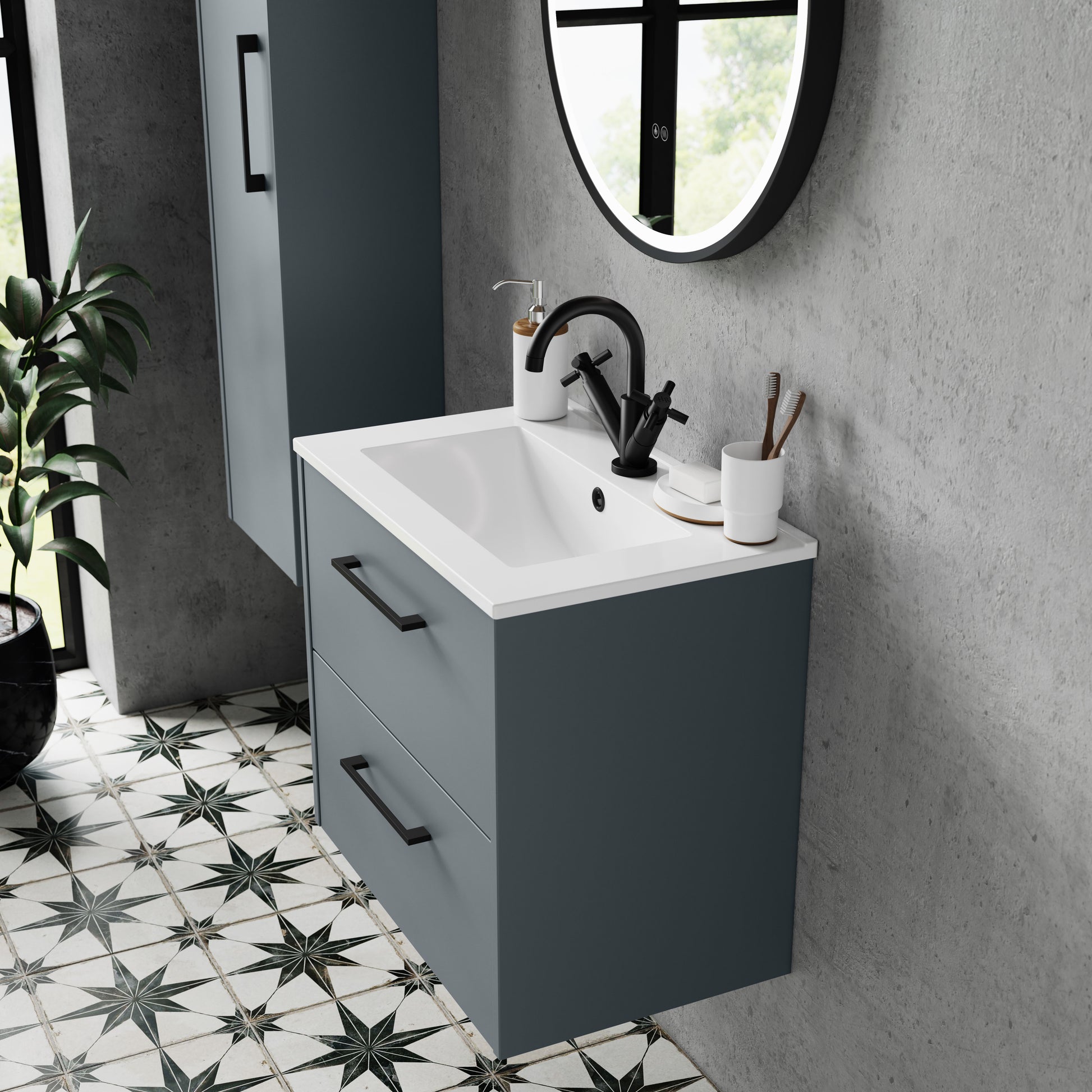 Hudson Reed Juno 800mm Wall Hung 2-Drawer Vanity & Minimalist 1 Tap Hole Basin - Coastal Grey