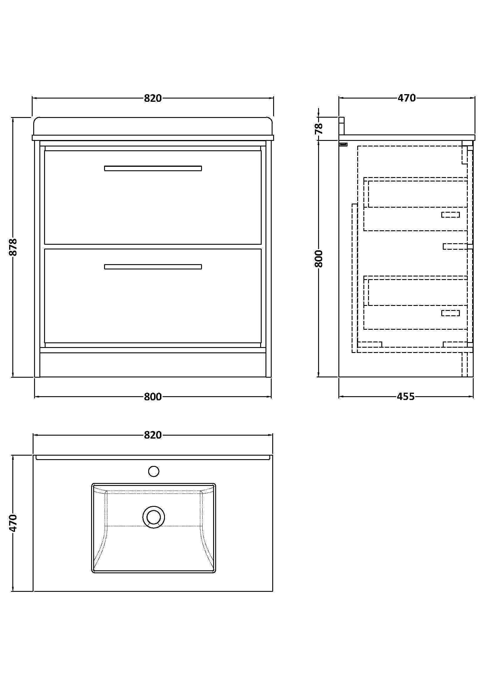 Hudson Reed Lille 800mm Bleached Oak Floor Standing 2-Drawer Vanity Unit with Marble Worktop Basin
