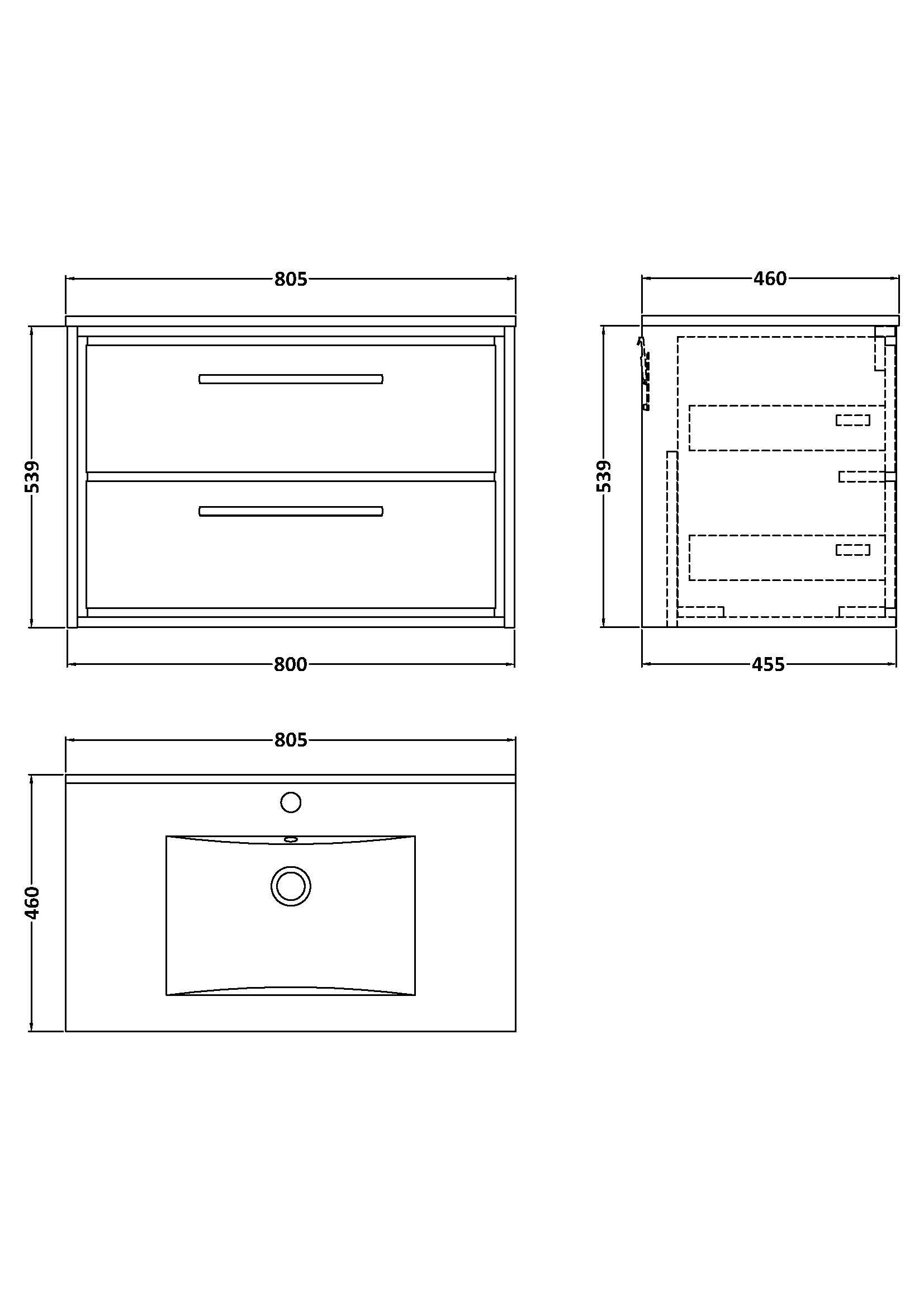 Hudson Reed Lille 800mm Bleached Oak Wall Hung 2-Drawer Soft Close Vanity Unit with Basin