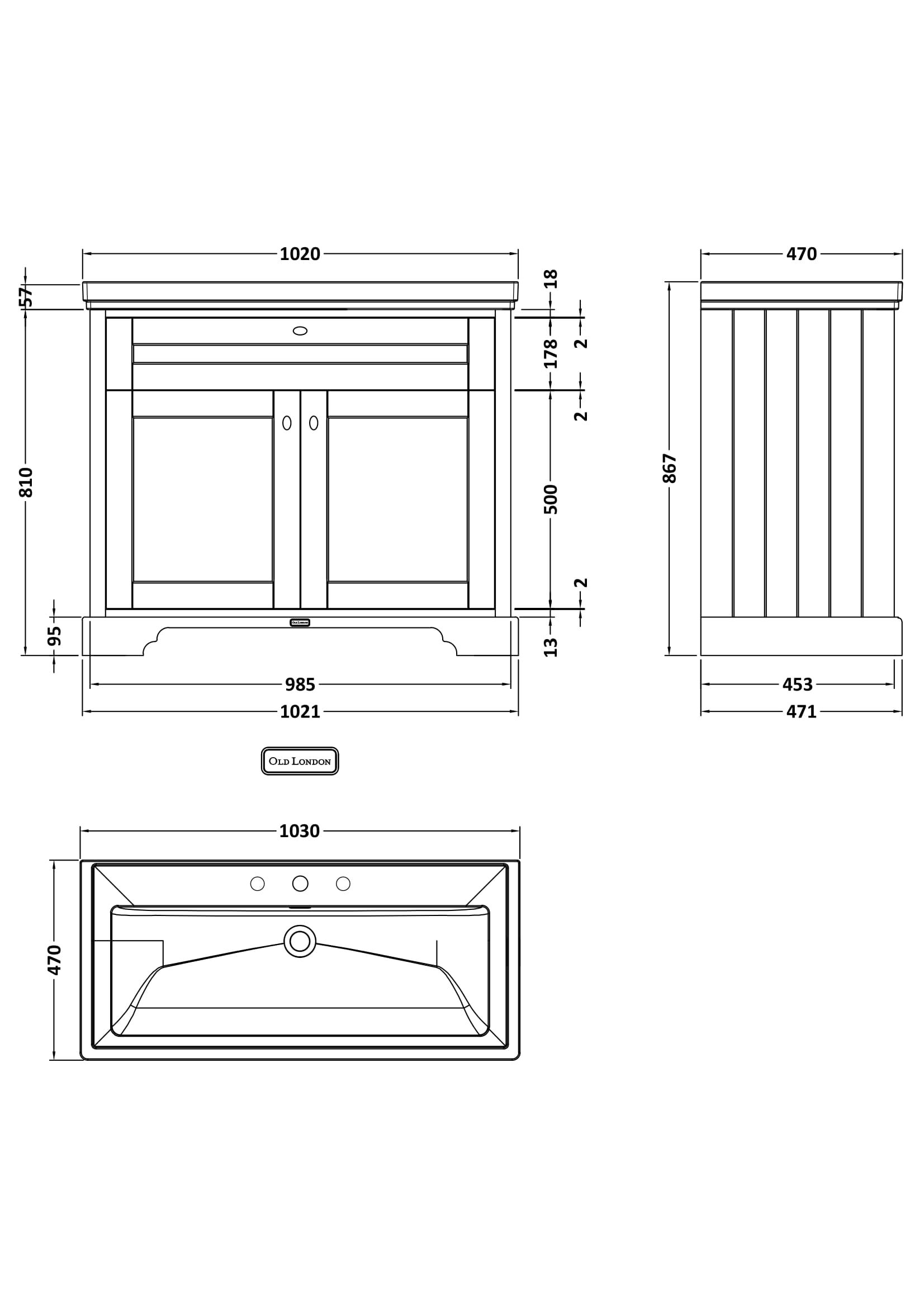 Hudson Reed Old London 1000mm 2-Door Unit & Classic Fireclay Basin 3TH - Storm Grey