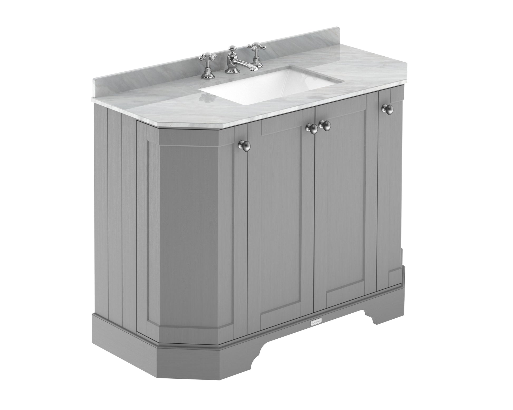 Old London Floor Standing 4 Door Angled Vanity Unit with 3 Tap Hole Grey Marble Top 1000mm - Storm Grey