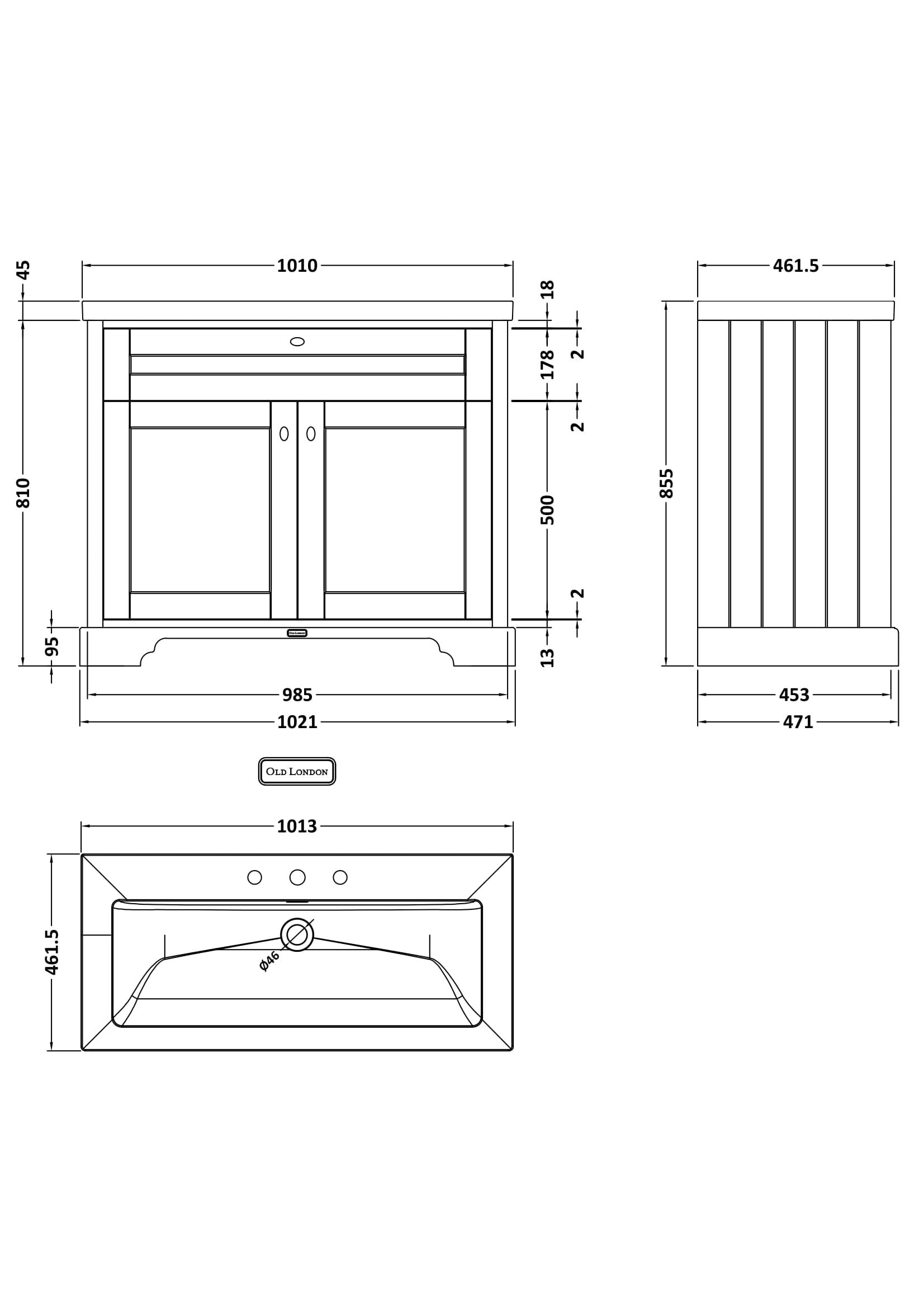 Hudson Reed Old London 1000mm 2-Door Unit & Contemporary Fireclay Basin 3TH - Storm Grey