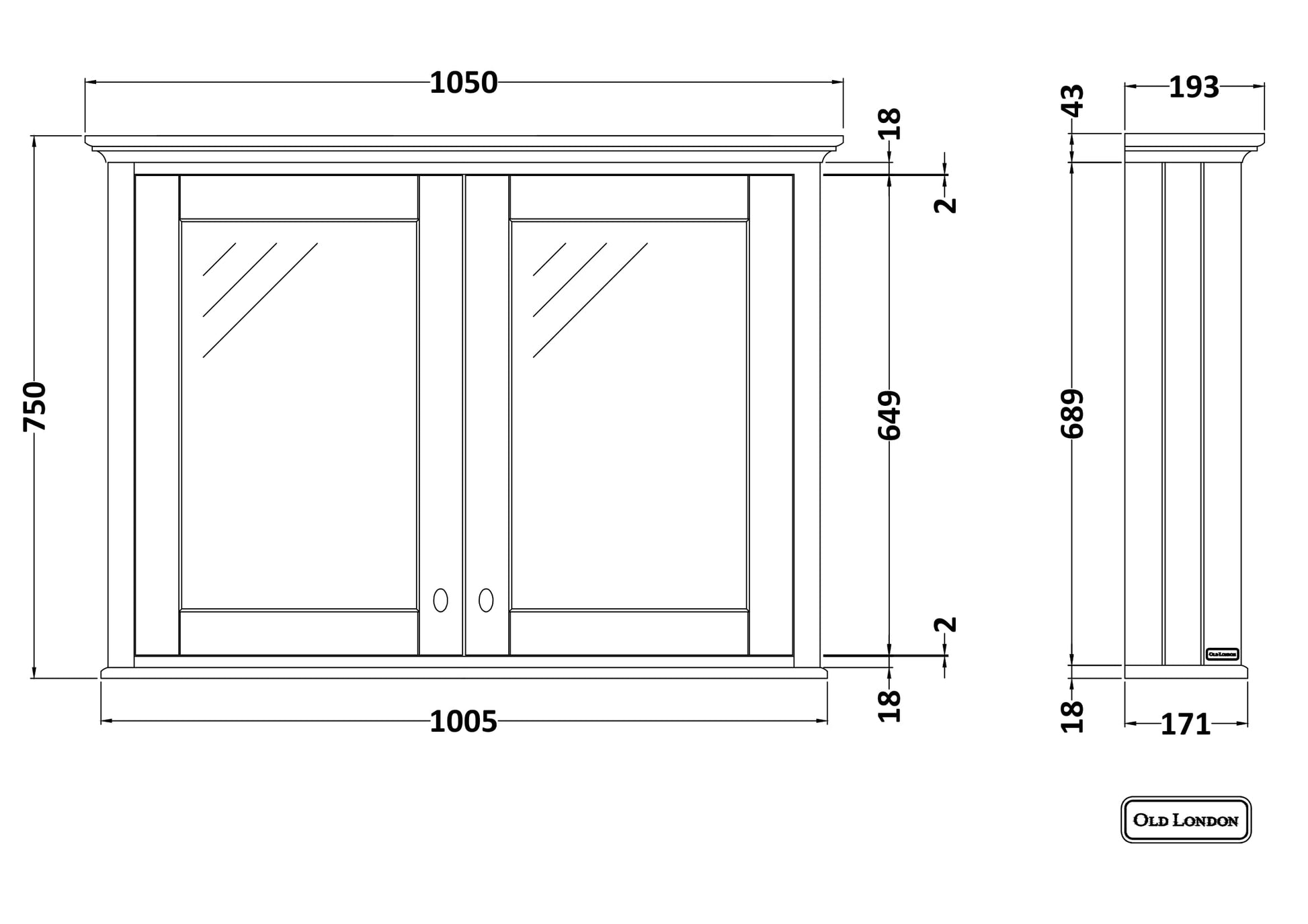 Old London Wall Hung 2 Door Mirror Cabinet 600mm - Hunter Green