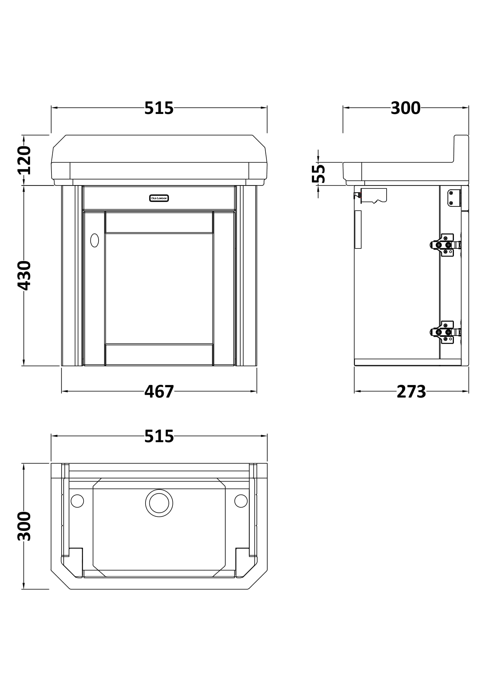 Old London Wall Hung 1 Door Cabinet with 2 Tap Hole Ceramic Basin 515mm - Twilight Blue